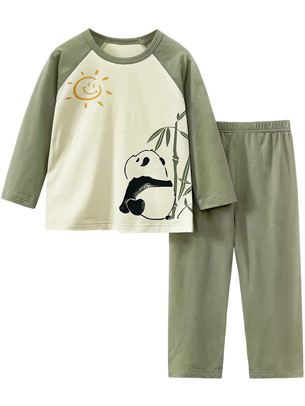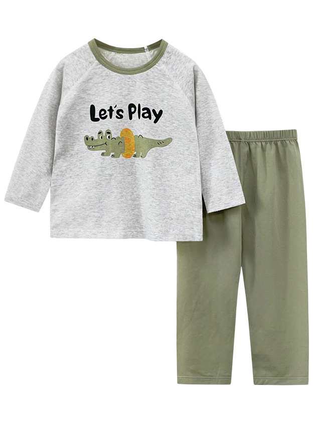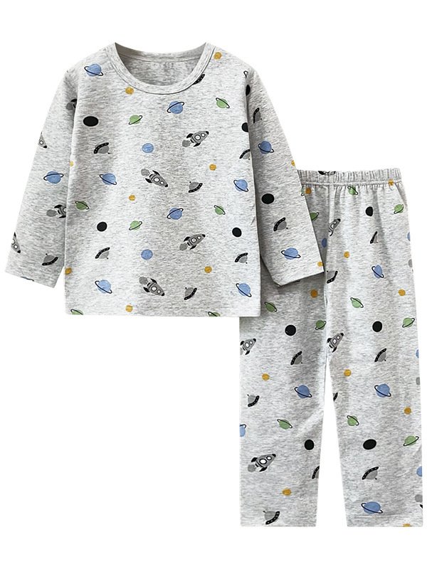 어린이 잠옷 소년 봄과 가을 새로운 순면 홈 옷 큰 어린이 여성 가을 옷과 바지 기본 속옷 세트