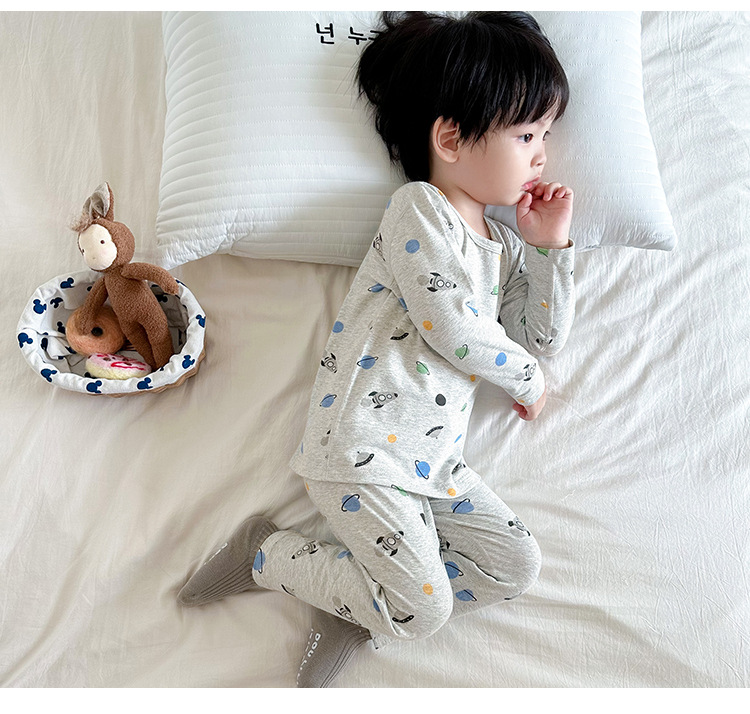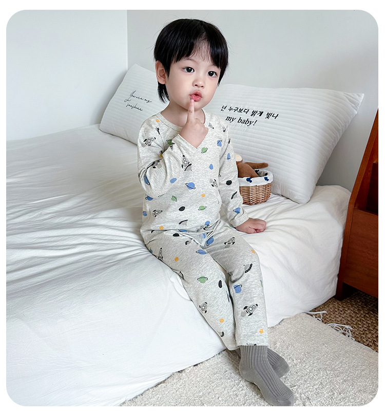 어린이 잠옷 소년 봄과 가을 새로운 순면 홈 옷 큰 어린이 여성 가을 옷과 바지 기본 속옷 세트스토어 가기