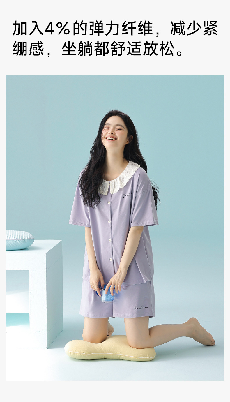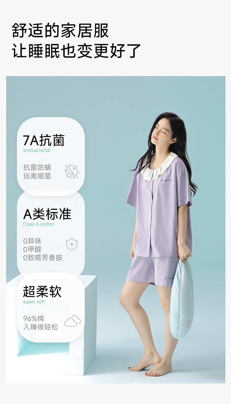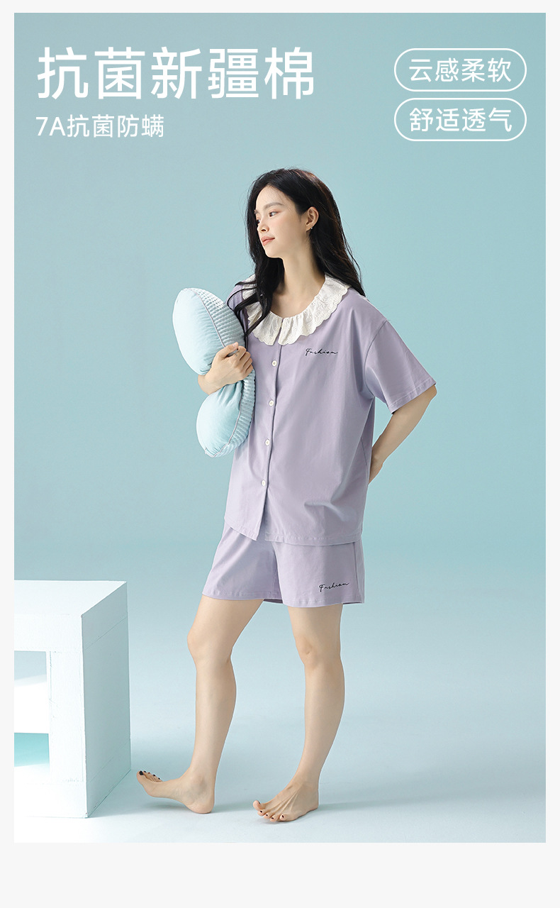 [항균성 신장면] 봄 여름 여성의 순면 짧은 소매 솔리드 컬러 홈 서비스 세트 위한 클래스 A 랙 코튼 파자마스토어 가기