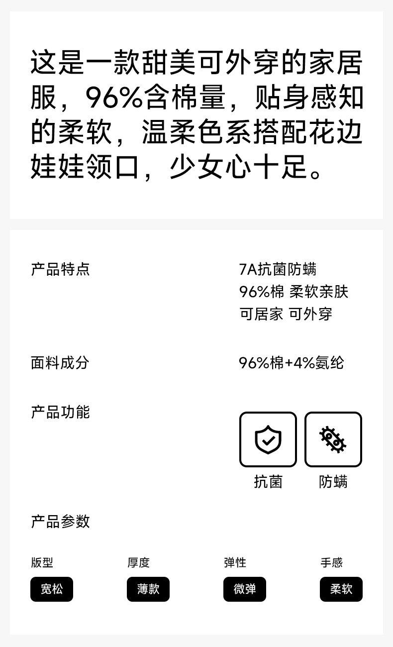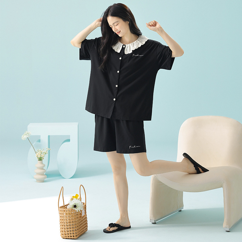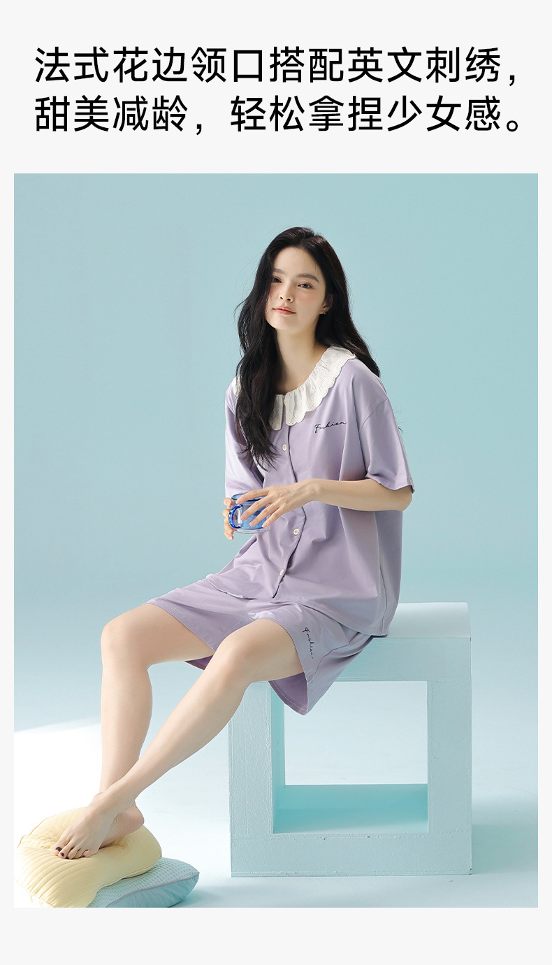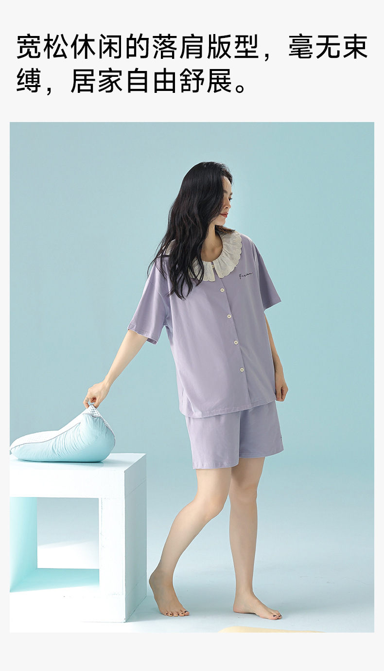 [항균성 신장면] 봄 여름 여성의 순면 짧은 소매 솔리드 컬러 홈 서비스 세트 위한 클래스 A 랙 코튼 파자마스토어 가기