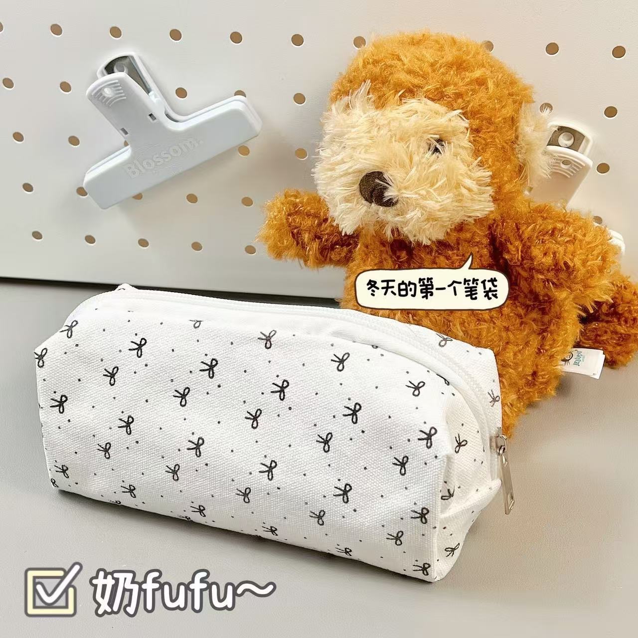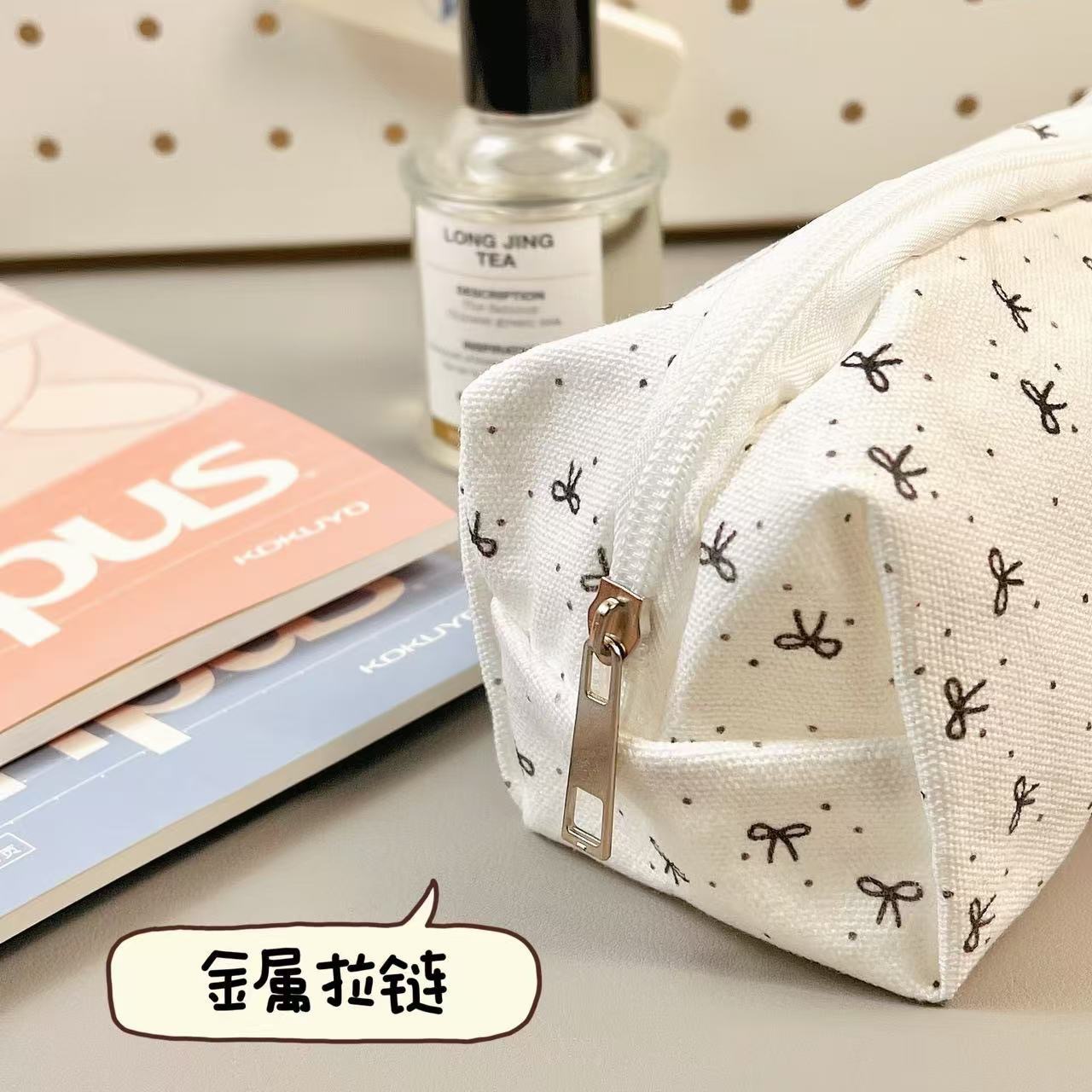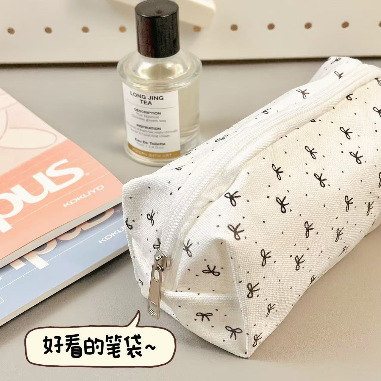 간단한 검은 활 연필 케이스 Ins 높은 가치 귀여운 소녀 학생 메이크업 가방 대용량 문구 보관 가방스토어 가기