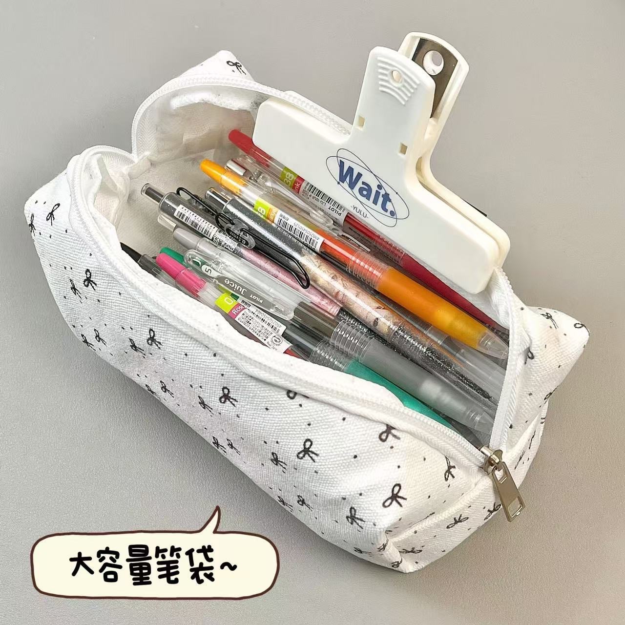 간단한 검은 활 연필 케이스 Ins 높은 가치 귀여운 소녀 학생 메이크업 가방 대용량 문구 보관 가방