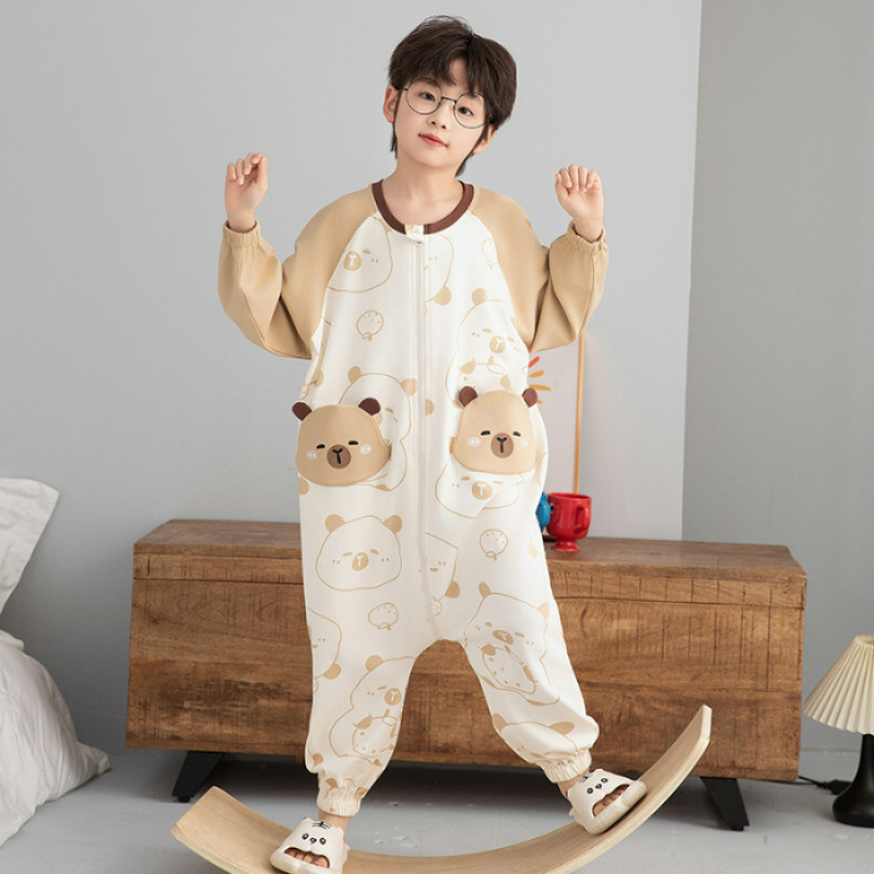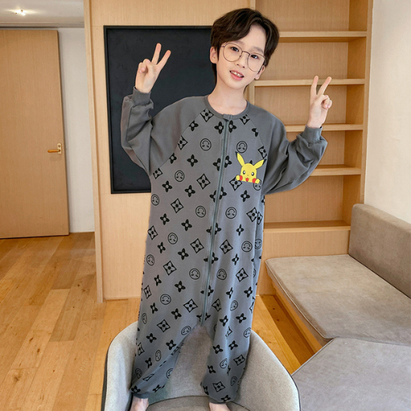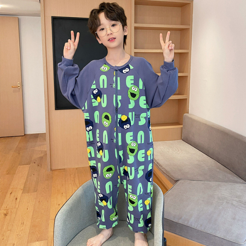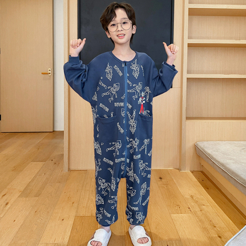 어린이 원피스 파자마 안티 콜드 걸스 퓨어 코튼 보이즈 베이비 파자마 가을 겨울 2025 새로운 큰 어린이 슬리핑 백