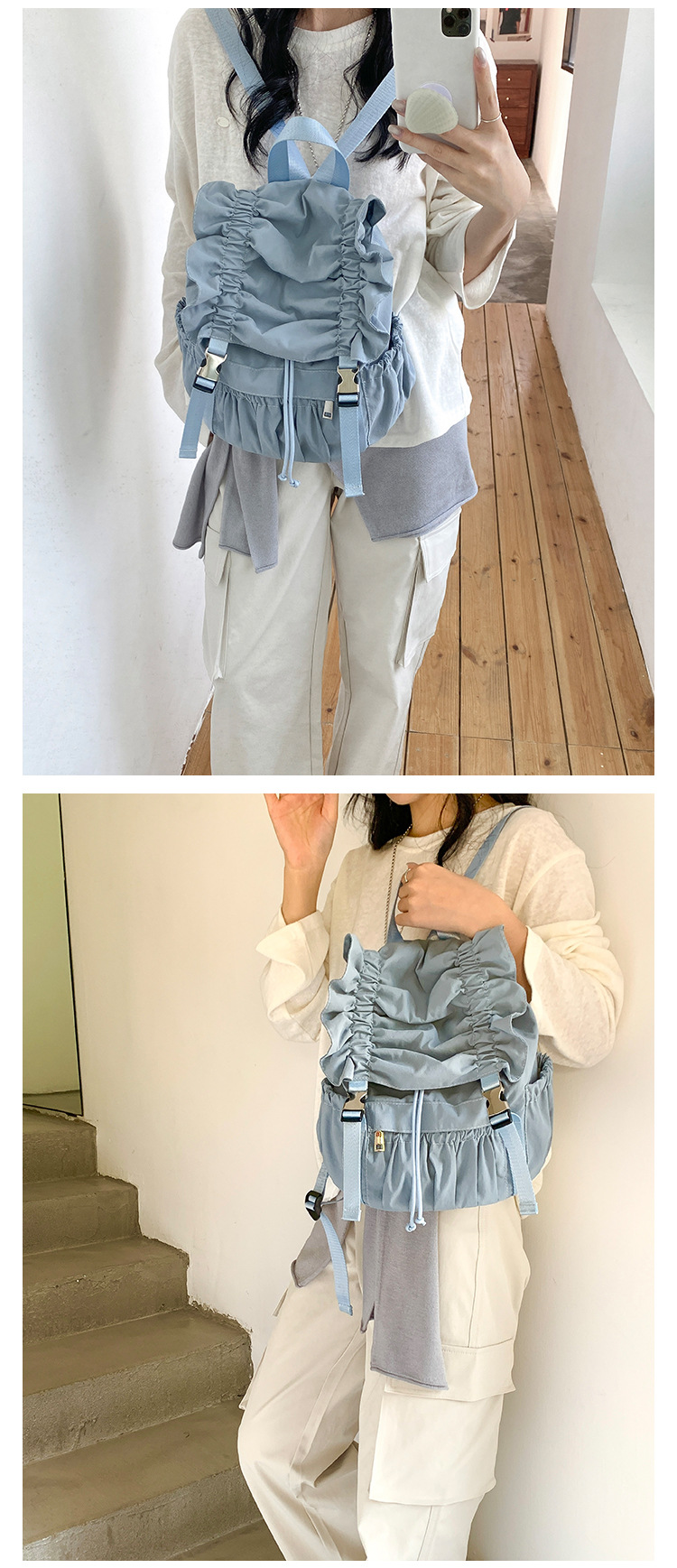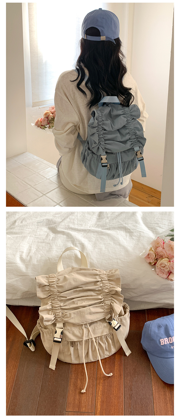 한국식 배낭 창조적 인 주름 디자인 2025 새로운 대학생 스쿨백 플립 타입 나일론 배낭 대용량스토어 가기