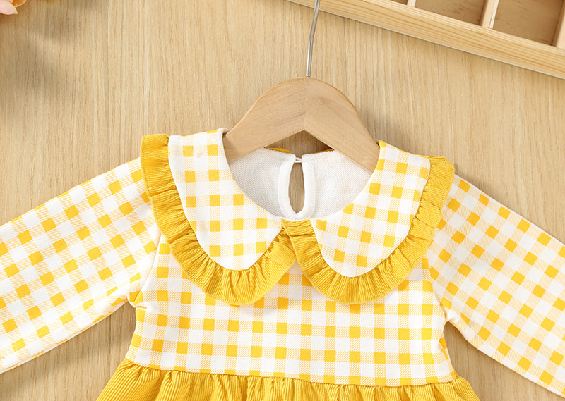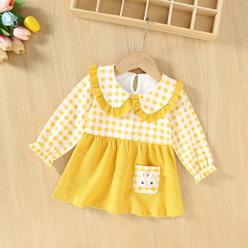 소녀 긴 소매 원피스 봄과 가을 새로운 세련된 아기 아동복 유행 작은 소녀 아기 격자 무늬 치마 가을