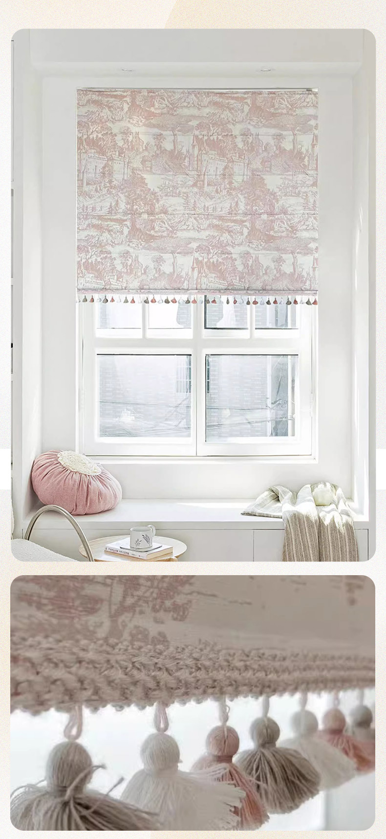 새로운 Chenille Jacquard 커튼 핑크 성 거실 침실 정전 접이식 프랑스 로마 커튼스토어 가기