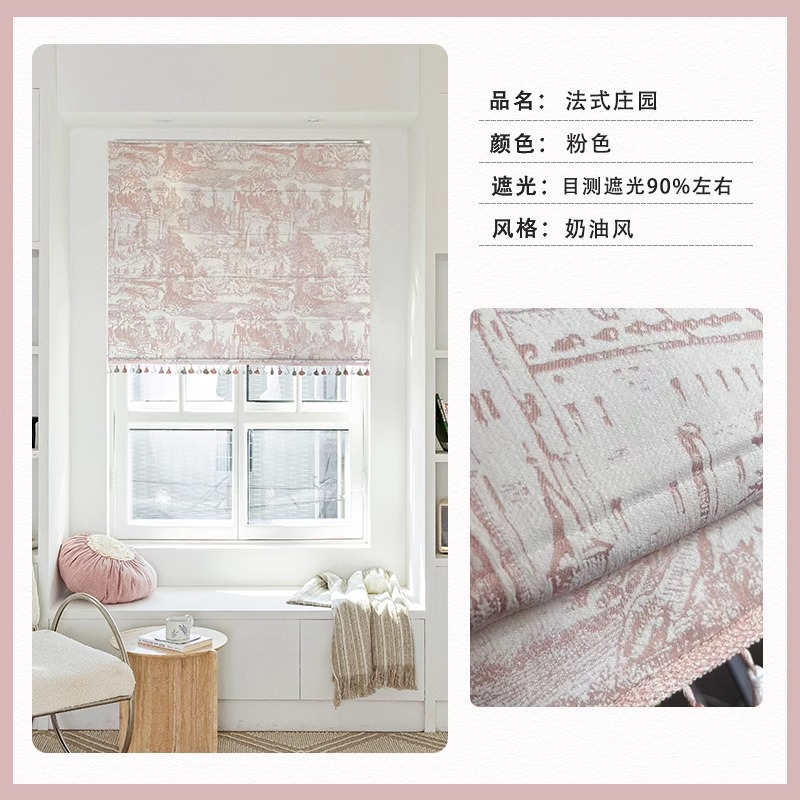 새로운 Chenille Jacquard 커튼 핑크 성 거실 침실 정전 접이식 프랑스 로마 커튼