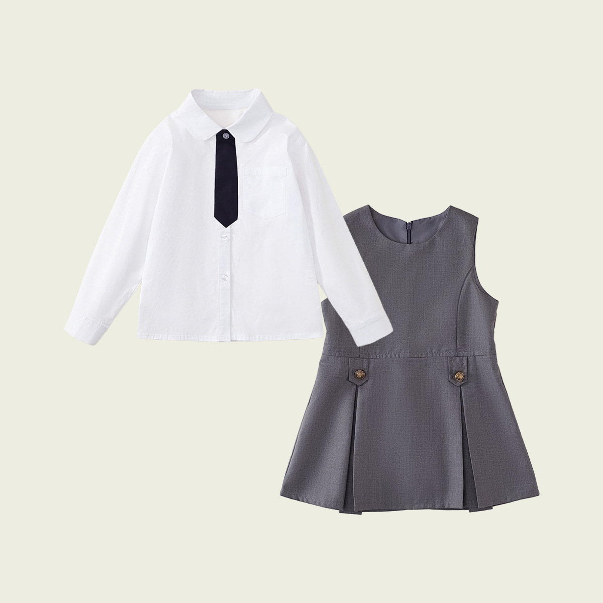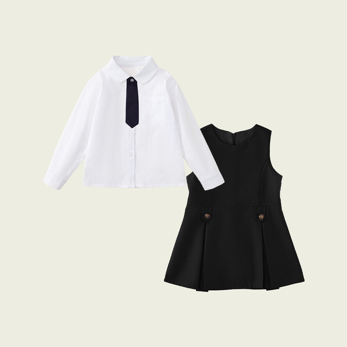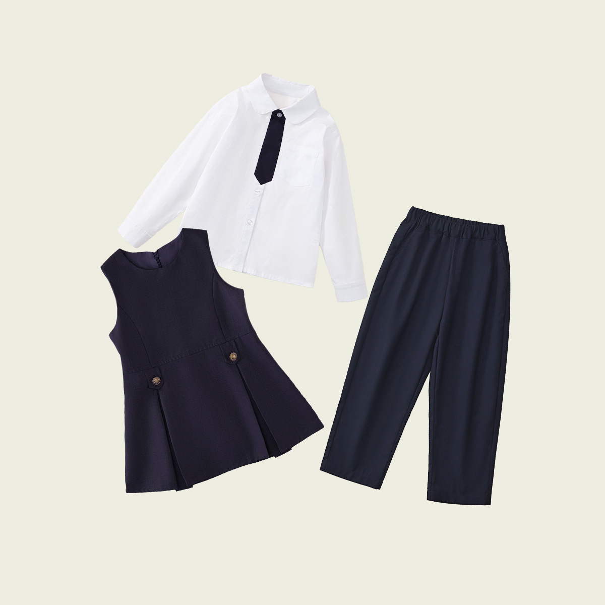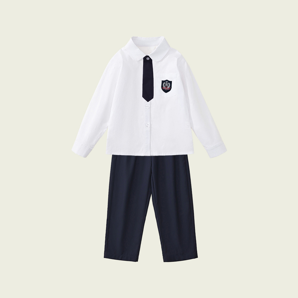 • 긴팔 셔츠 + 남색 바지 (투피스 세트)