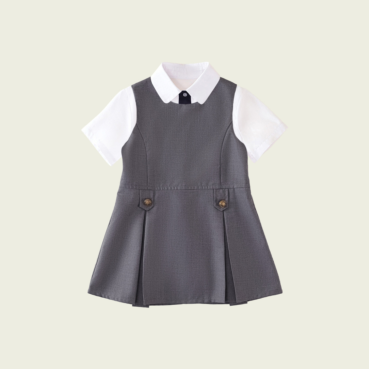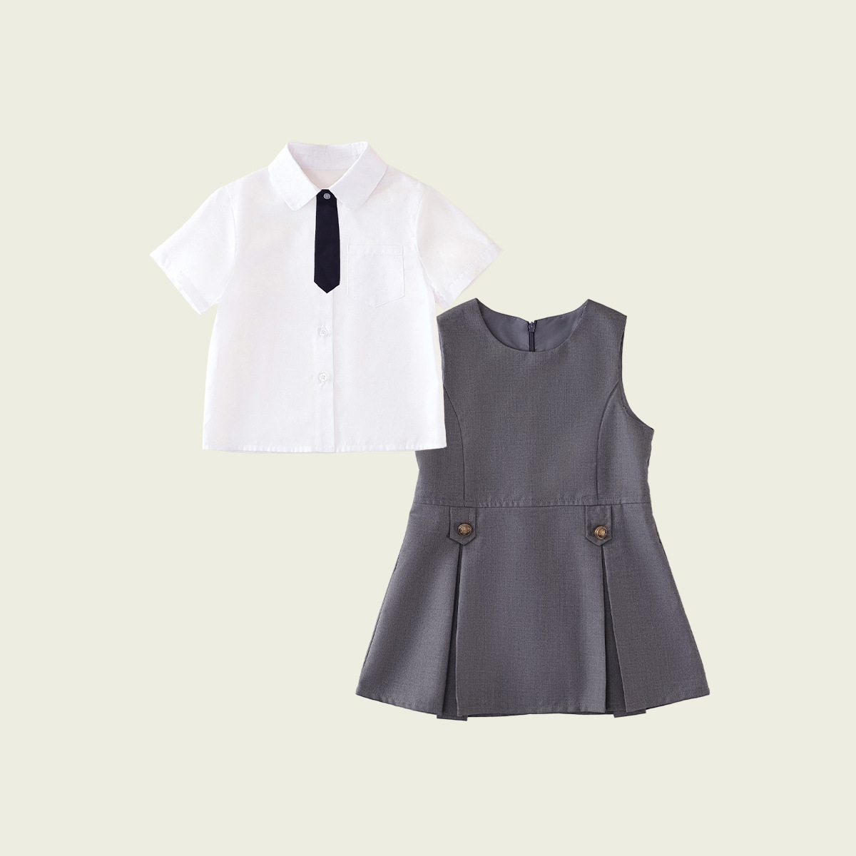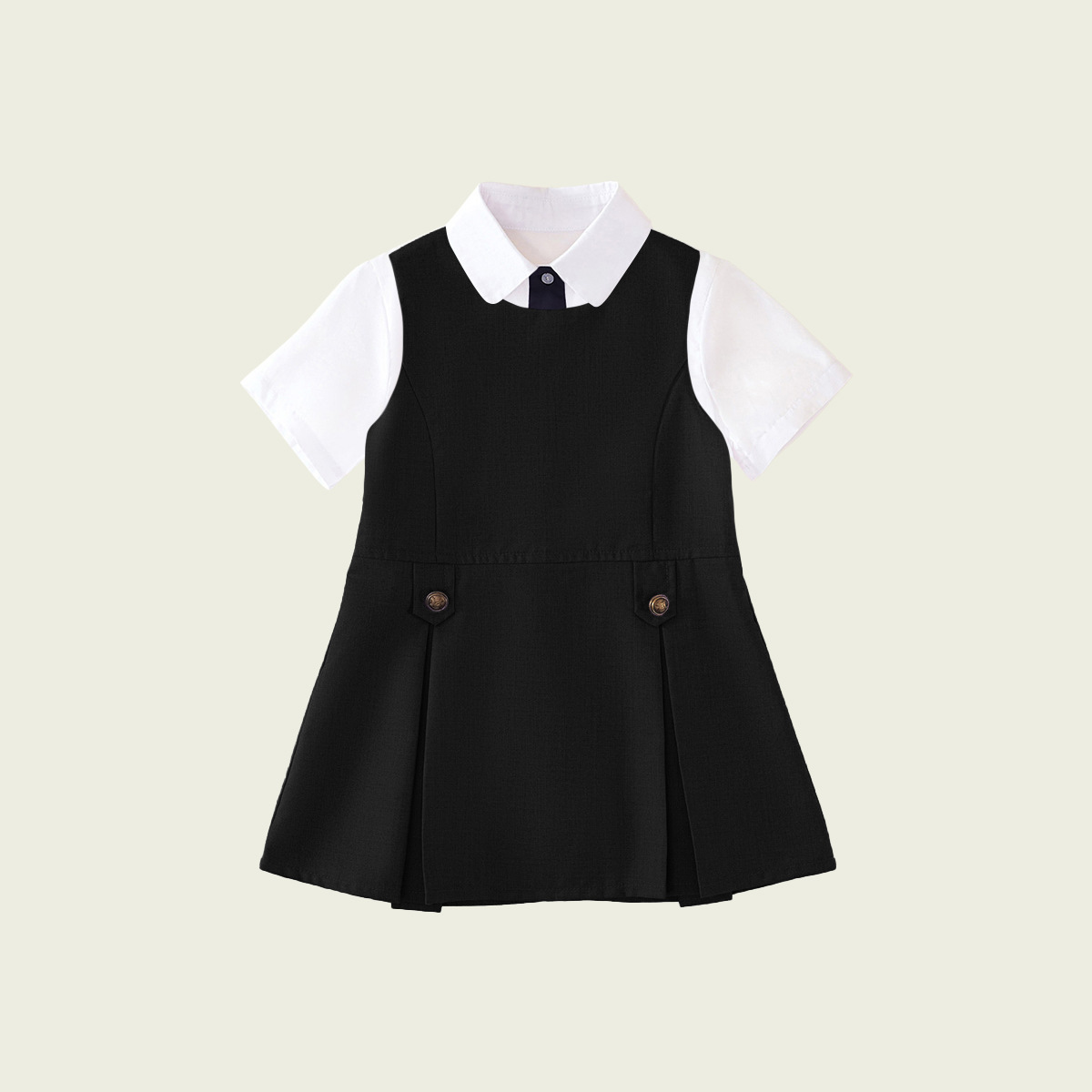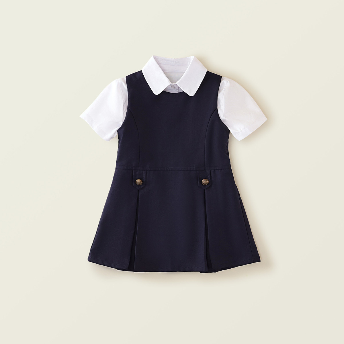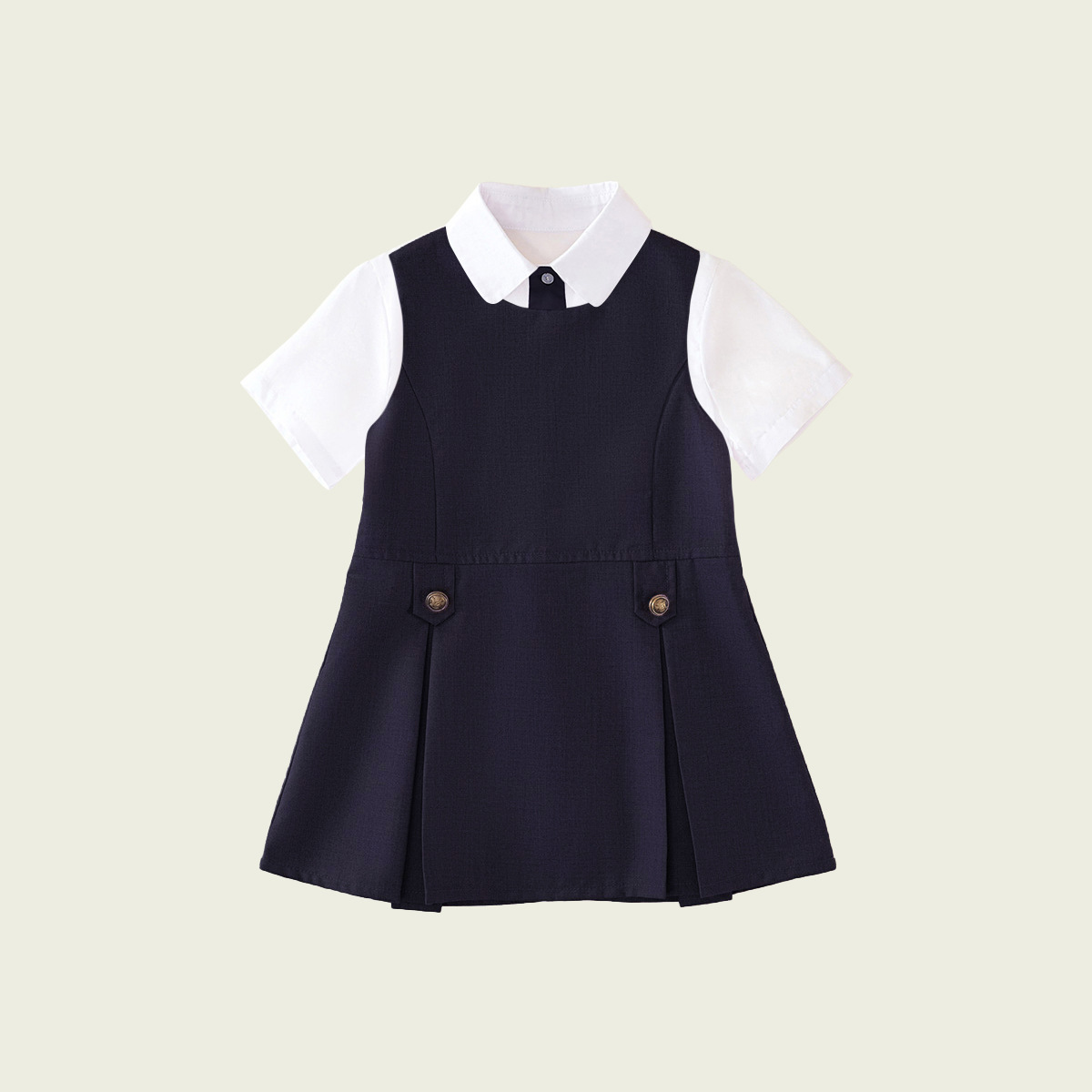 • 반팔 셔츠 + 네이비 베스트 스커트 (투피스 세트)