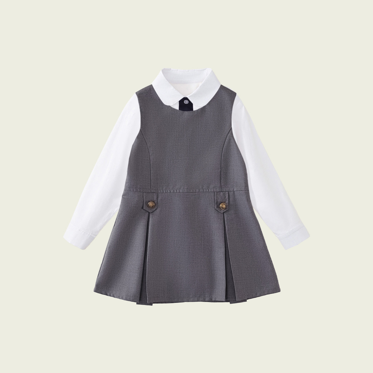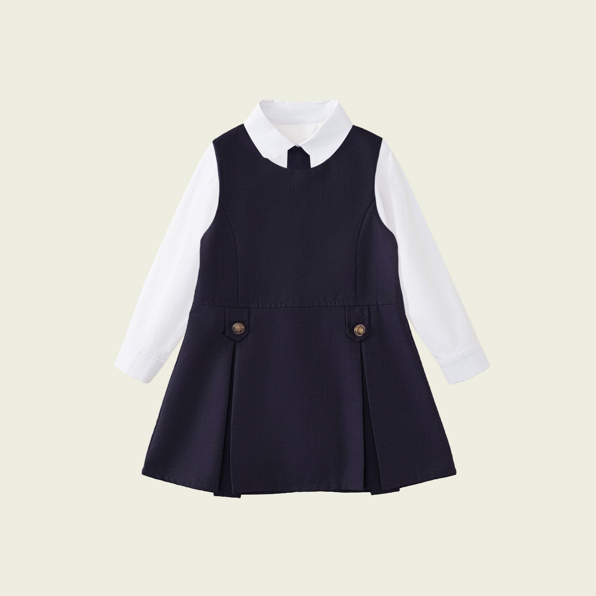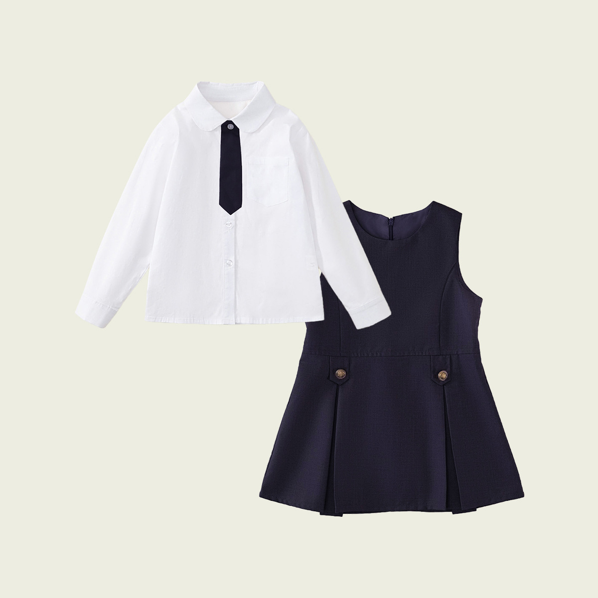 • 긴팔 셔츠 + 네이비 베스트 스커트 (투피스 세트)