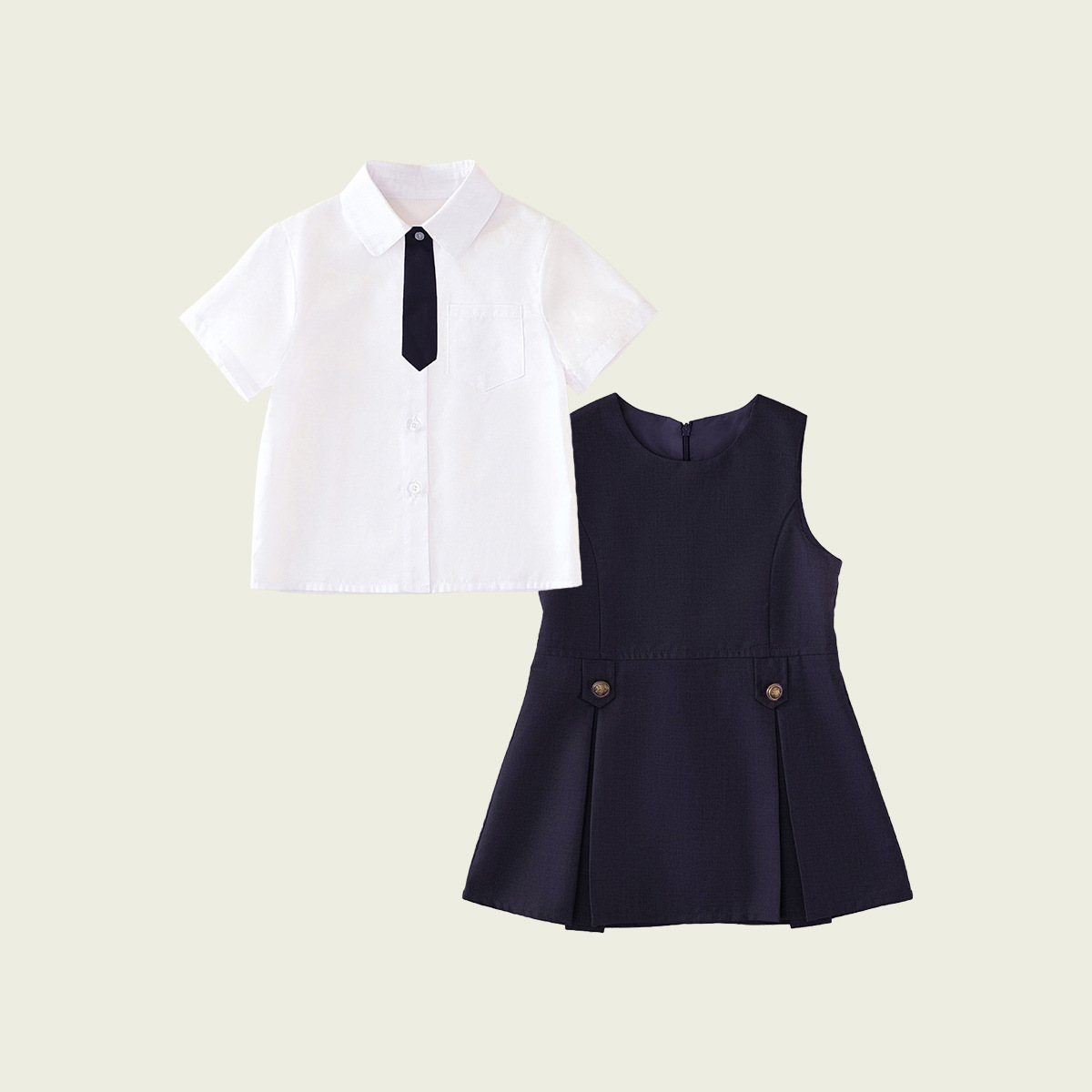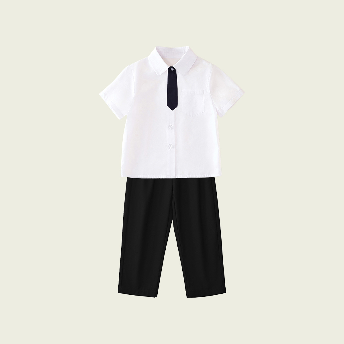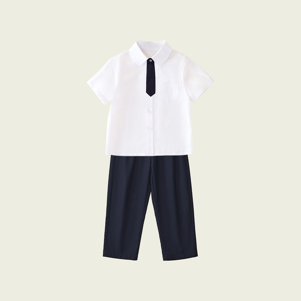 • 반팔 셔츠 + 남색 바지 (투피스 세트)