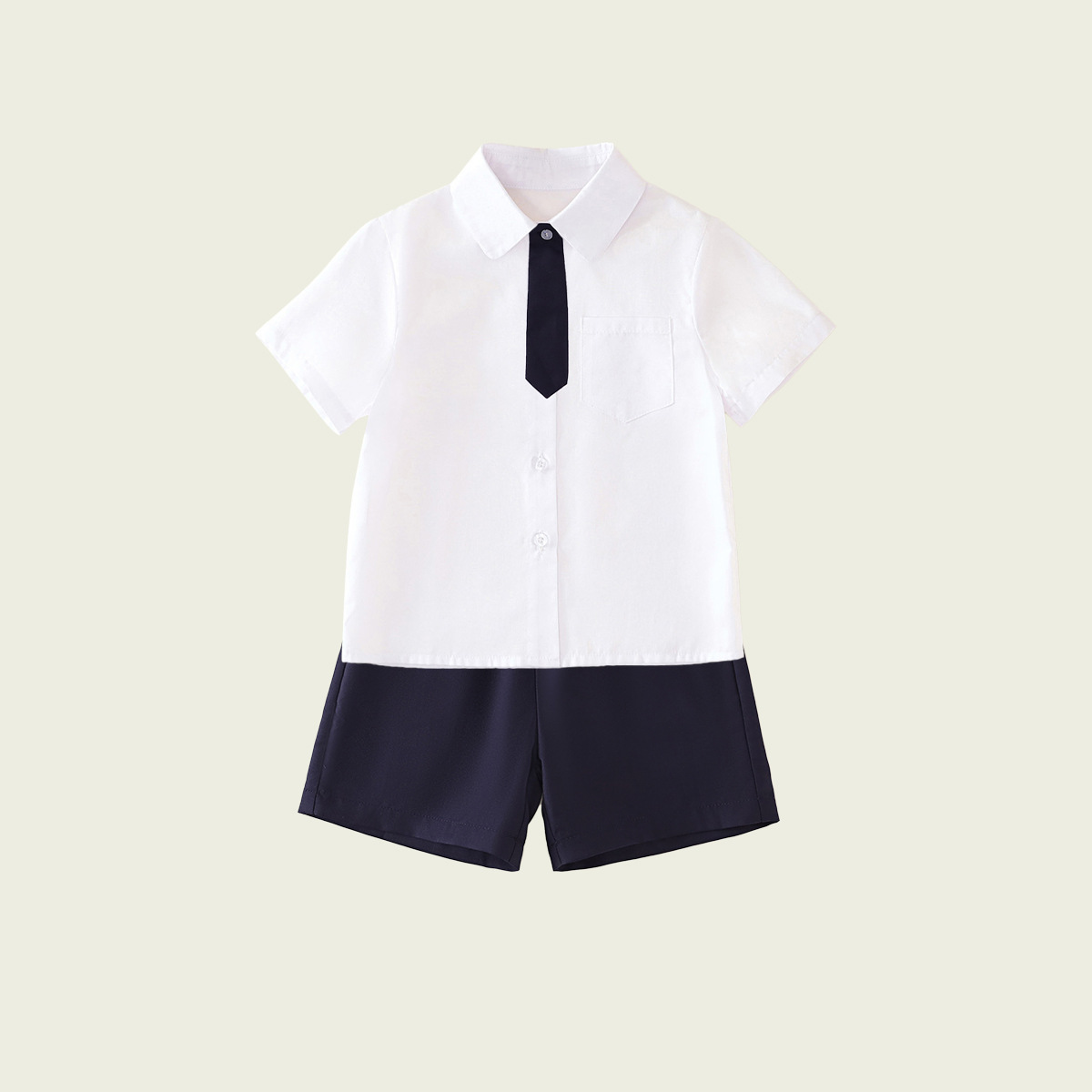 • 반팔 셔츠 + 남색 반바지 (투피스 세트)