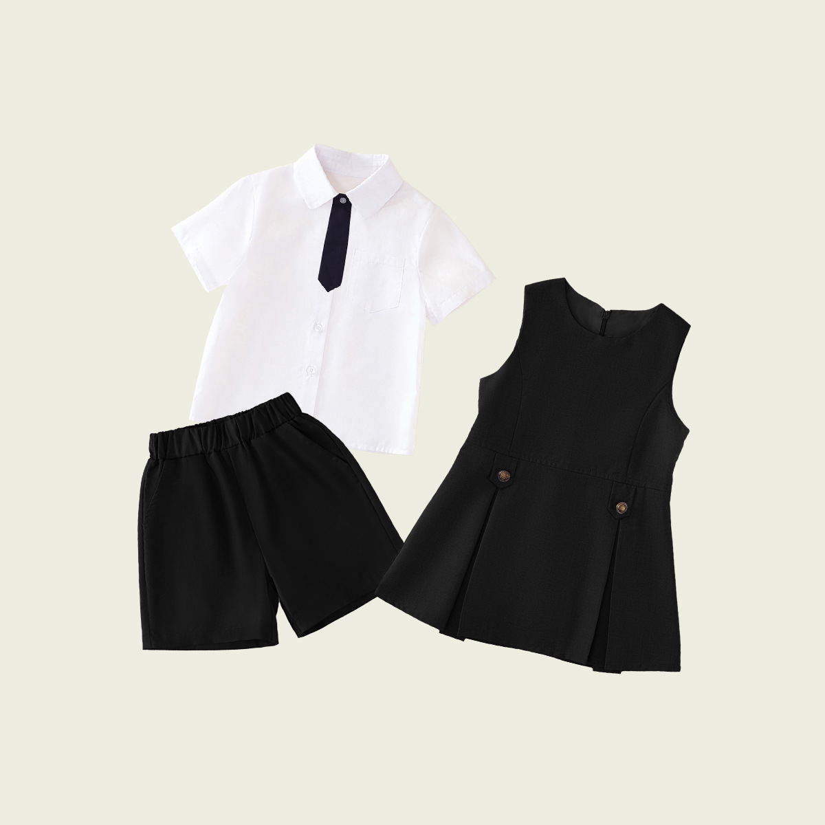 • 반팔 셔츠 + 블랙 반바지 (투피스 세트)
