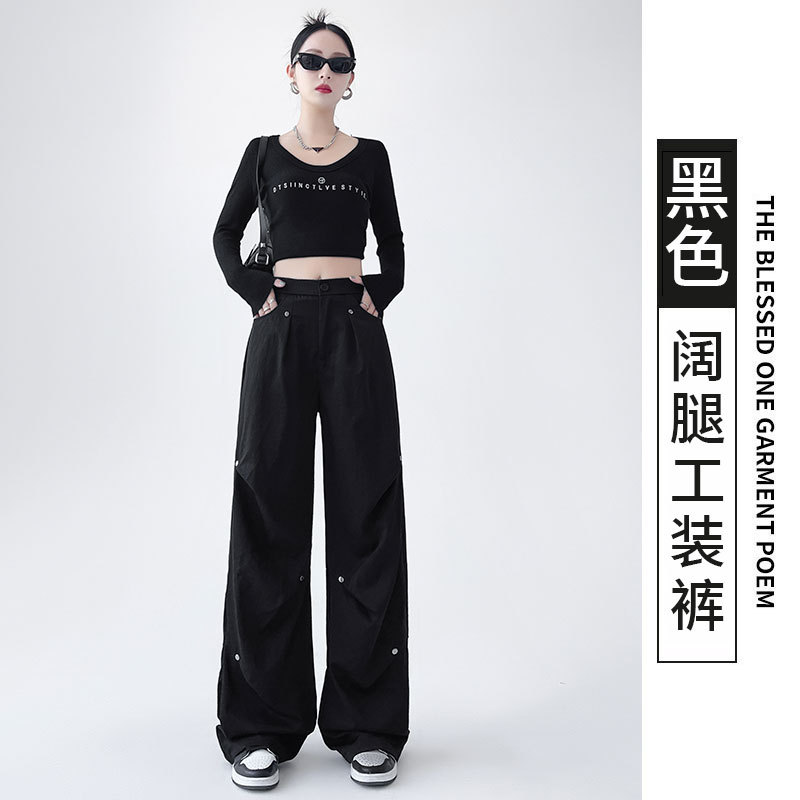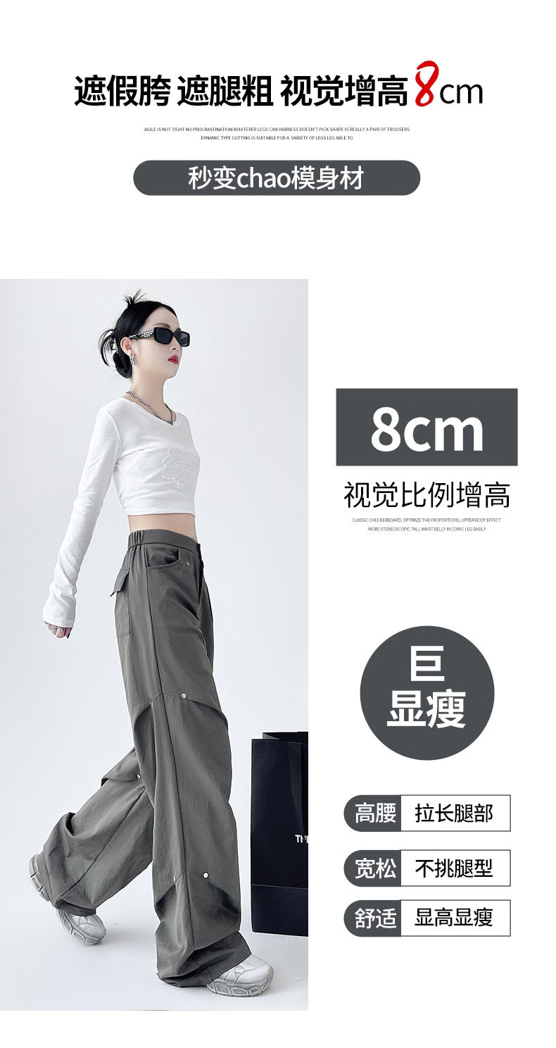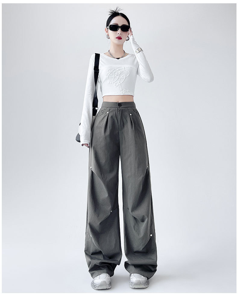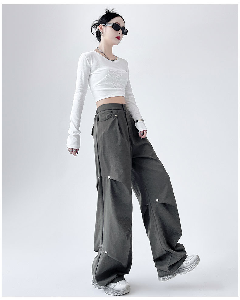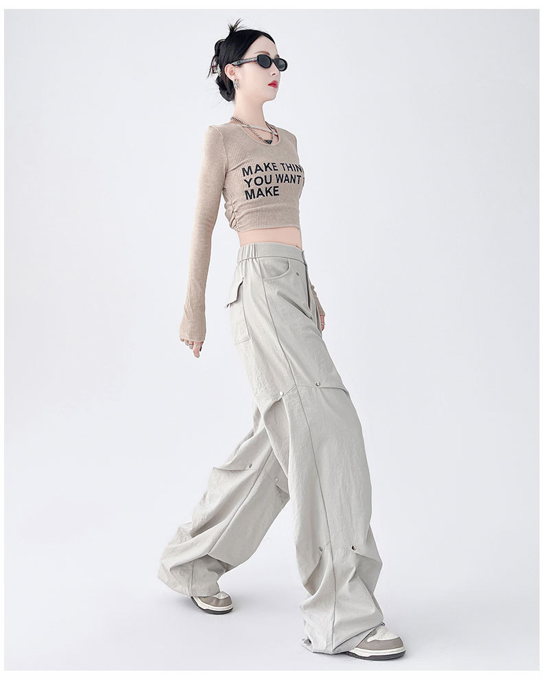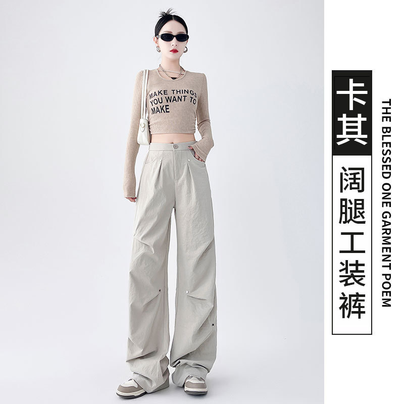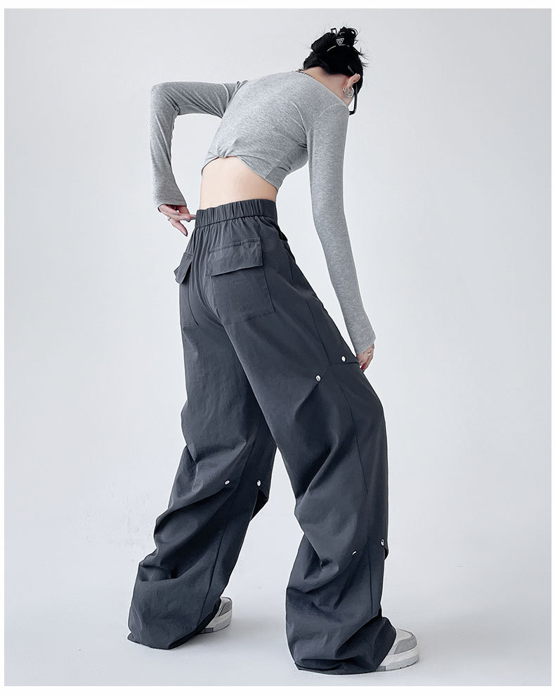 American Rivet Overalls 여성 봄과 여름 2025 새로운 높은 허리 느슨한 넓은 다리 스트레이트 등산 스포츠 바지