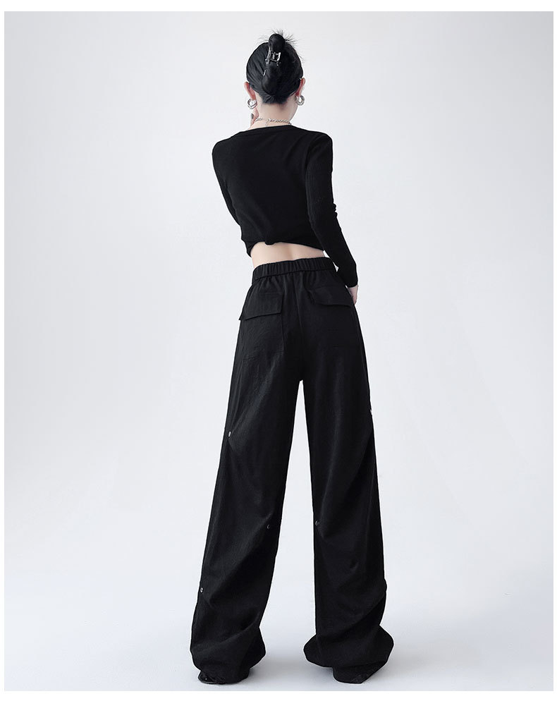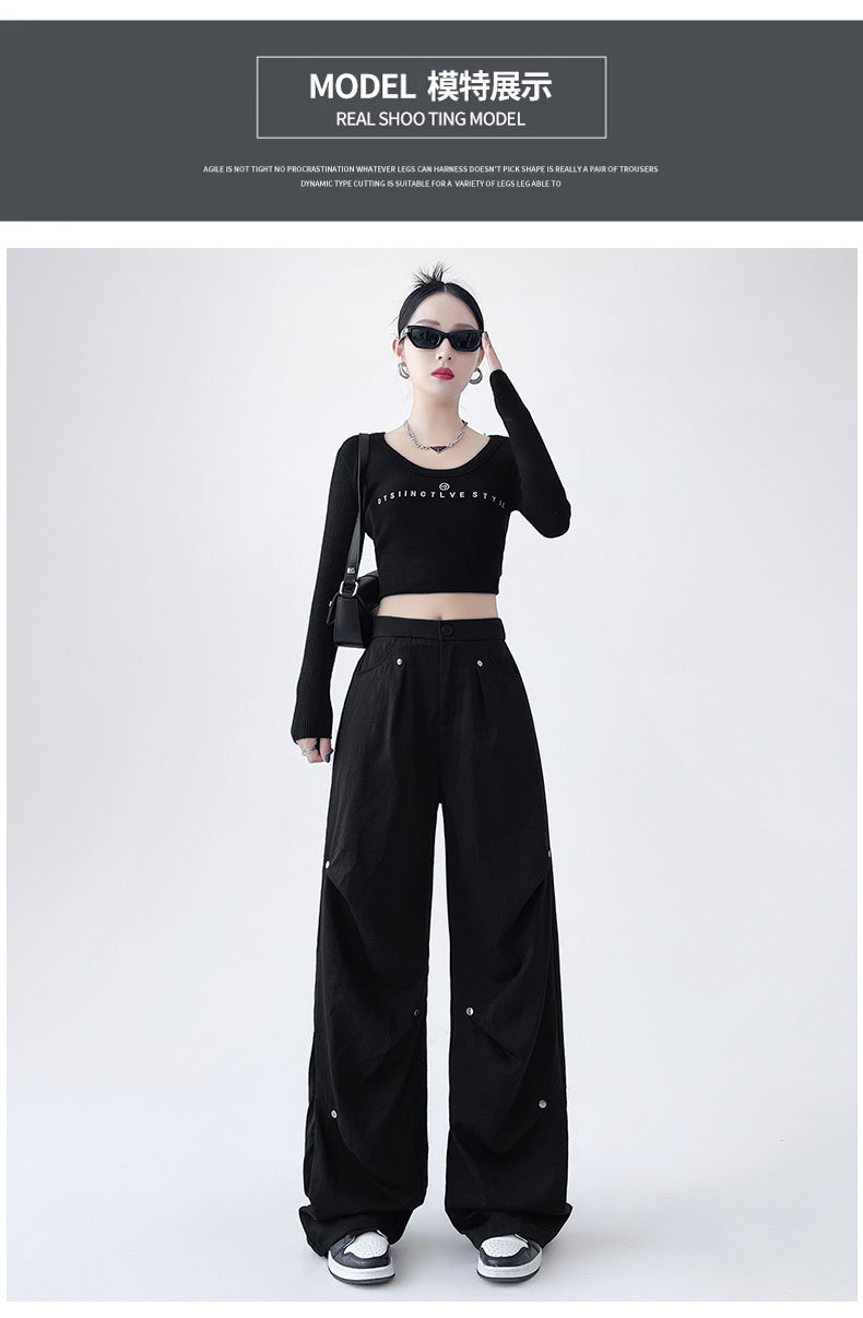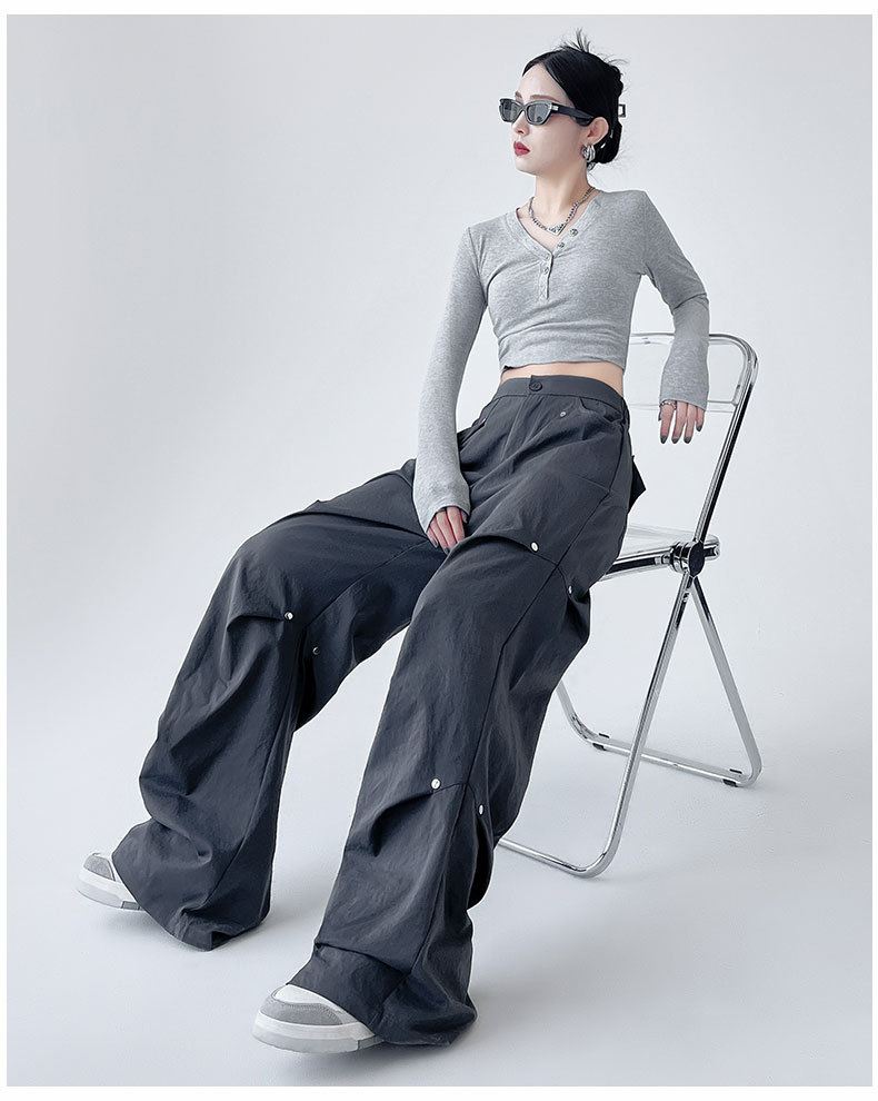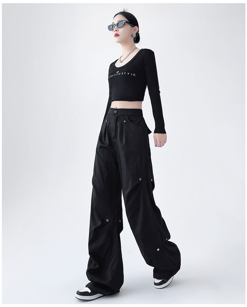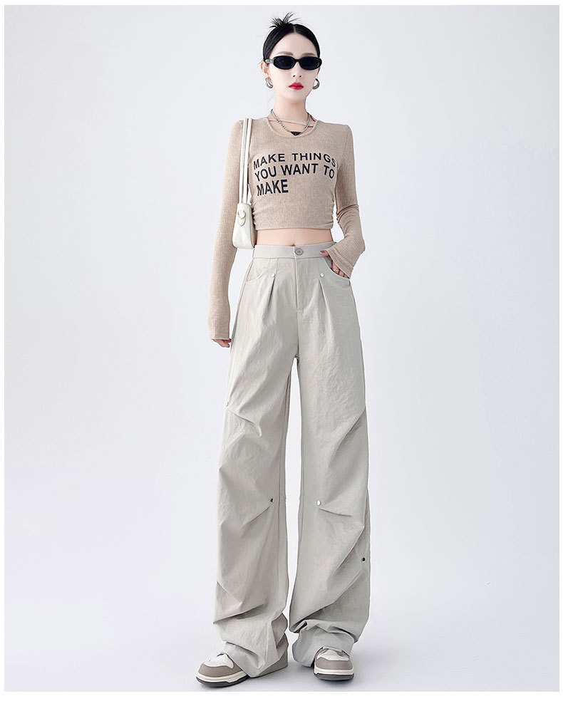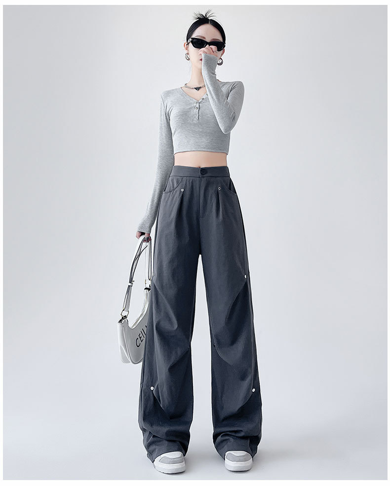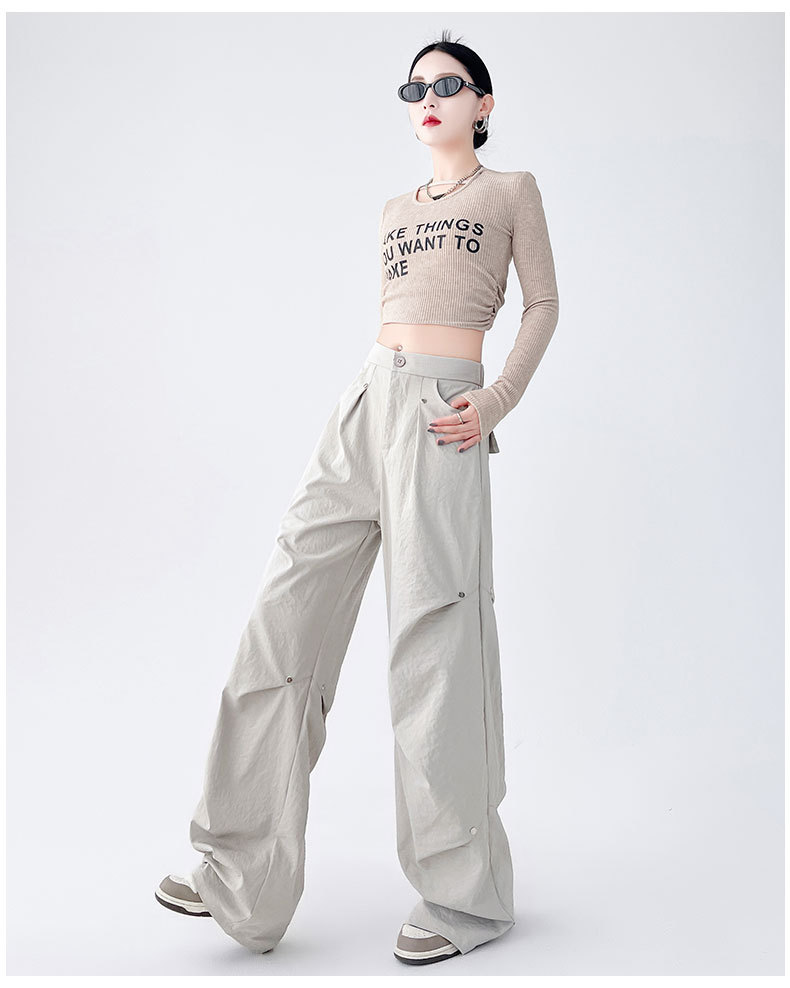 American Rivet Overalls 여성 봄과 여름 2025 새로운 높은 허리 느슨한 넓은 다리 스트레이트 등산 스포츠 바지