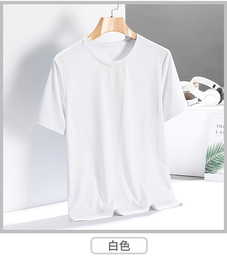 아이스 실크 반팔 티셔츠 남자 여름 얇은 빠른 건조 메쉬 스포츠 피트니스 반소매 탑 캐주얼 탄성 T 여름