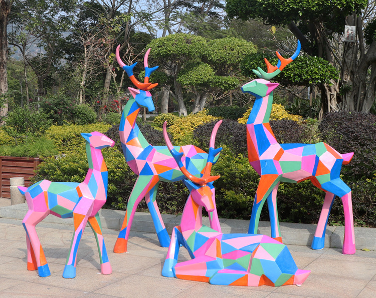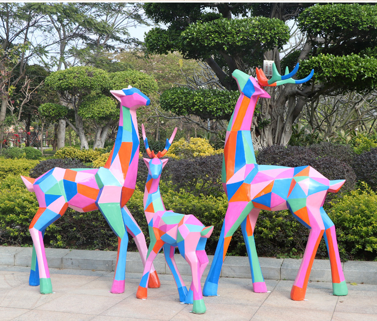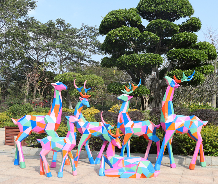 야외 유리 섬유 강화 플라스틱 블록 표면 기하학적 sika 사슴 조각 추상 안뜰 정원 잔디 장식 장식 정원 풍경스토어 가기