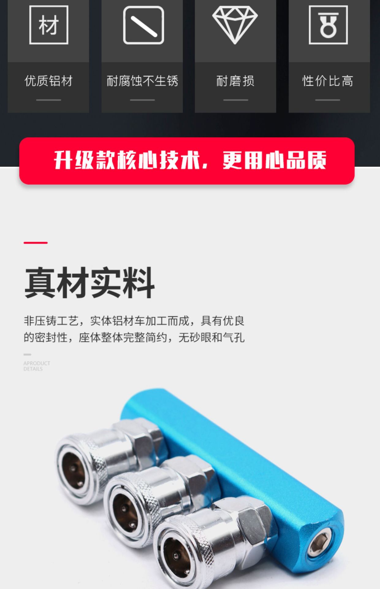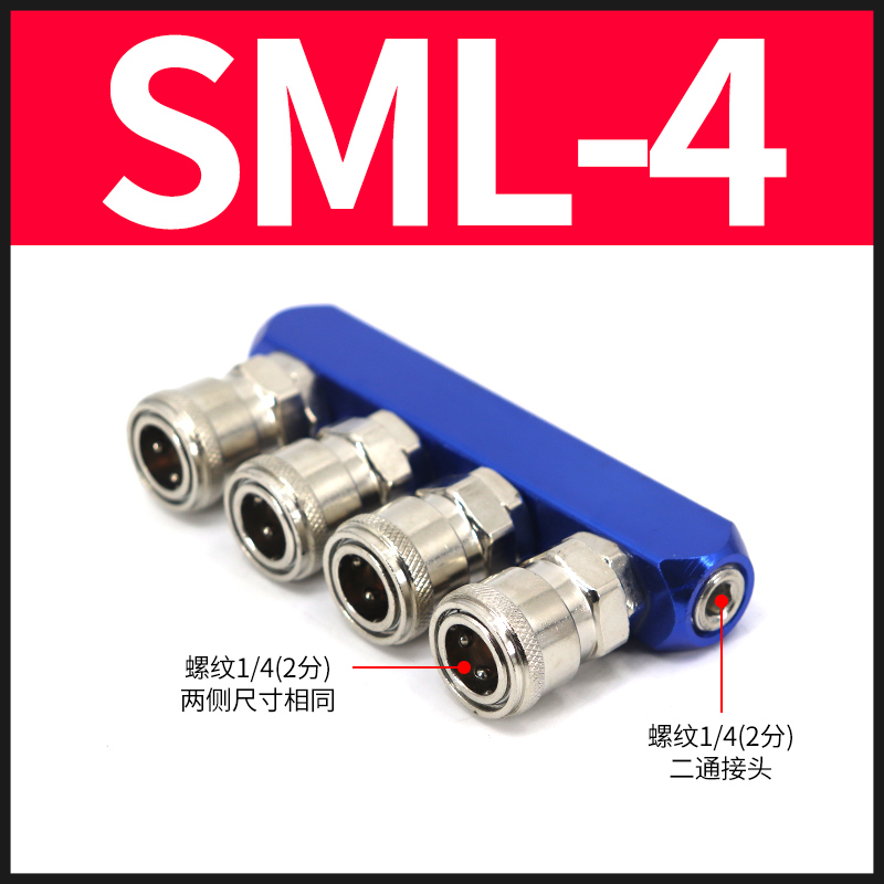 공압 다중 파이프 공기 배기 SML34 공기 파이프 빠른 커넥터 기본 다중 통로 분배기 알루미늄 스트립 2 공기 블록스토어 가기