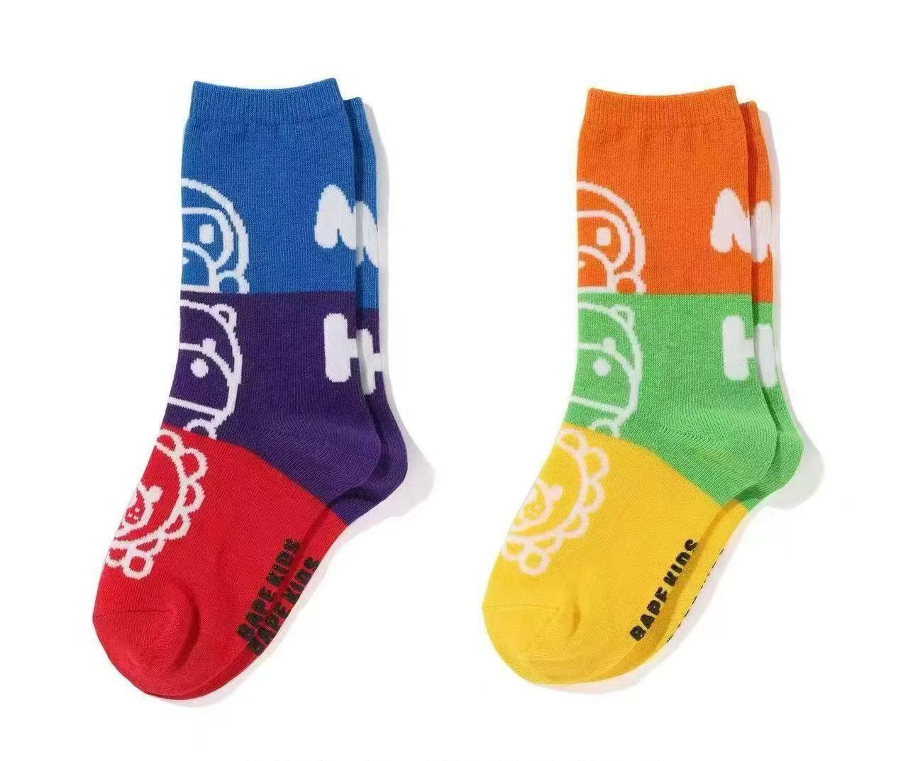 【재고 있음】25 봄/여름 트렌디 브랜드 고급 아동복 원숭이 컬러풀 배색 어린이 코마면 양말 2켤레 세트