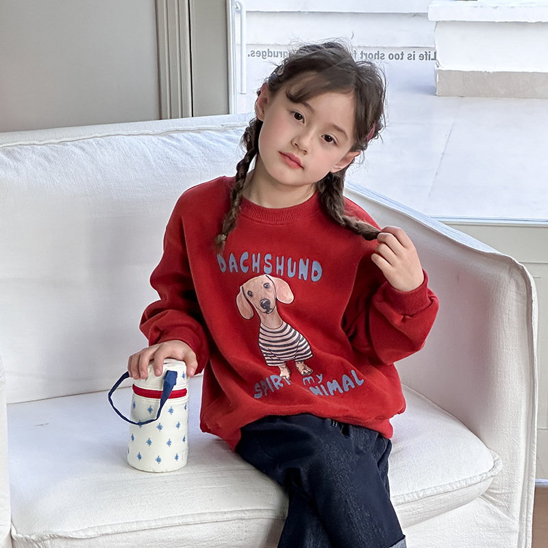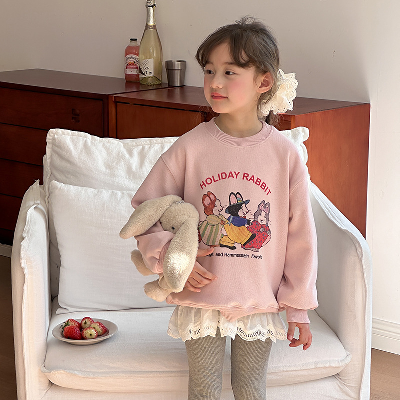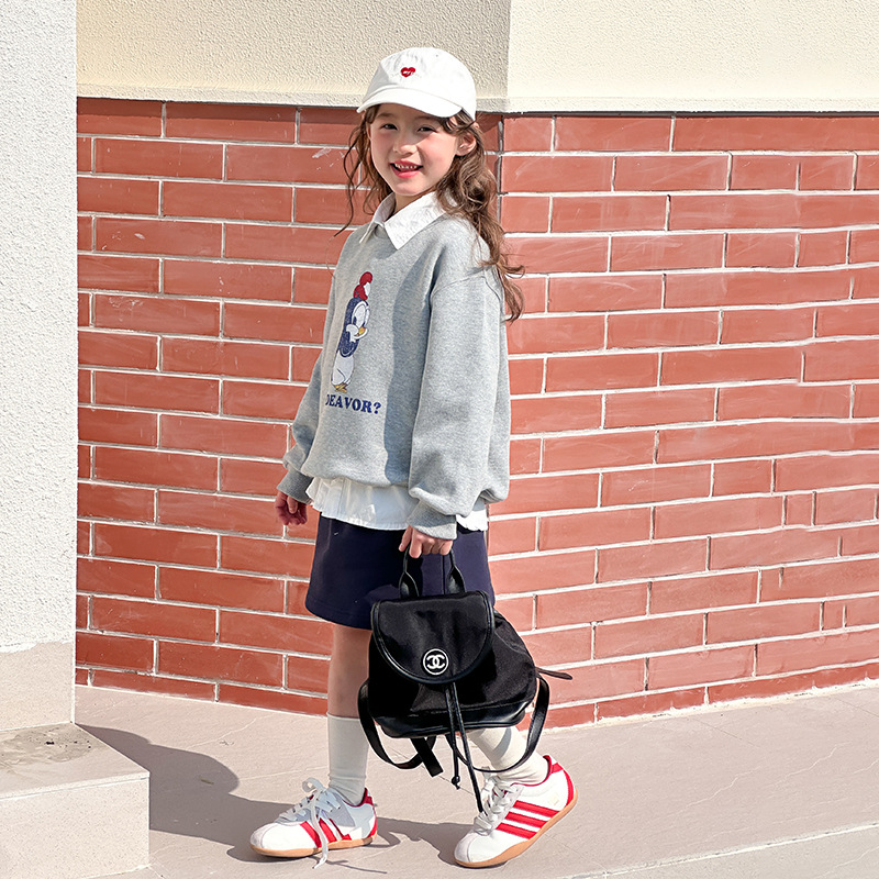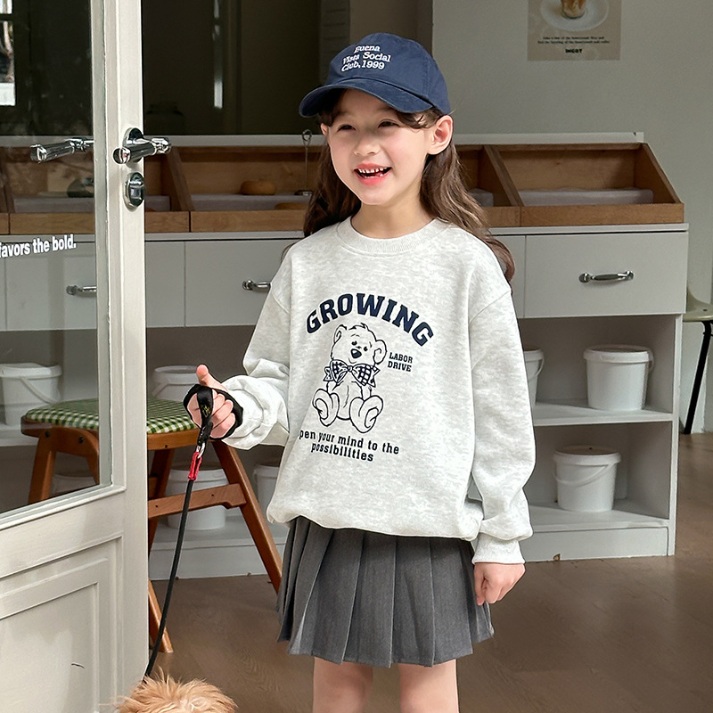 이모 베이 베이 2025 봄 새로운 어린이 만화 귀여운 스웨터 소녀 한국 캐주얼 느슨한 승무원 풀오버스토어 가기