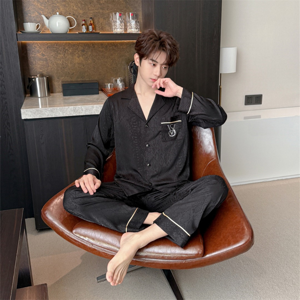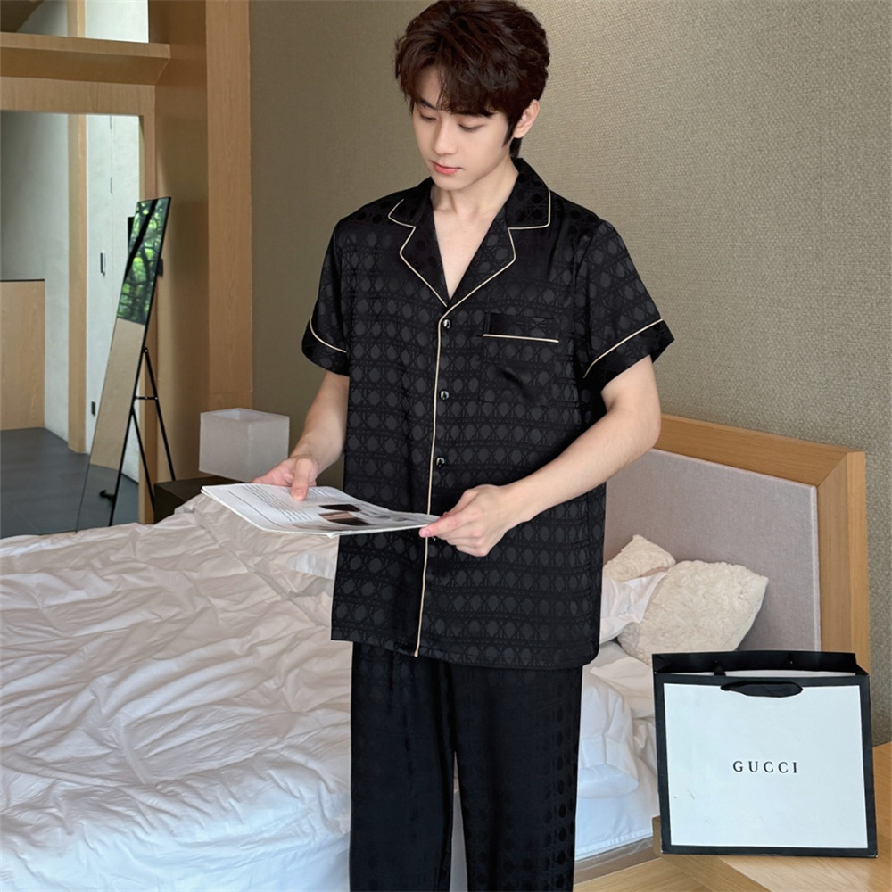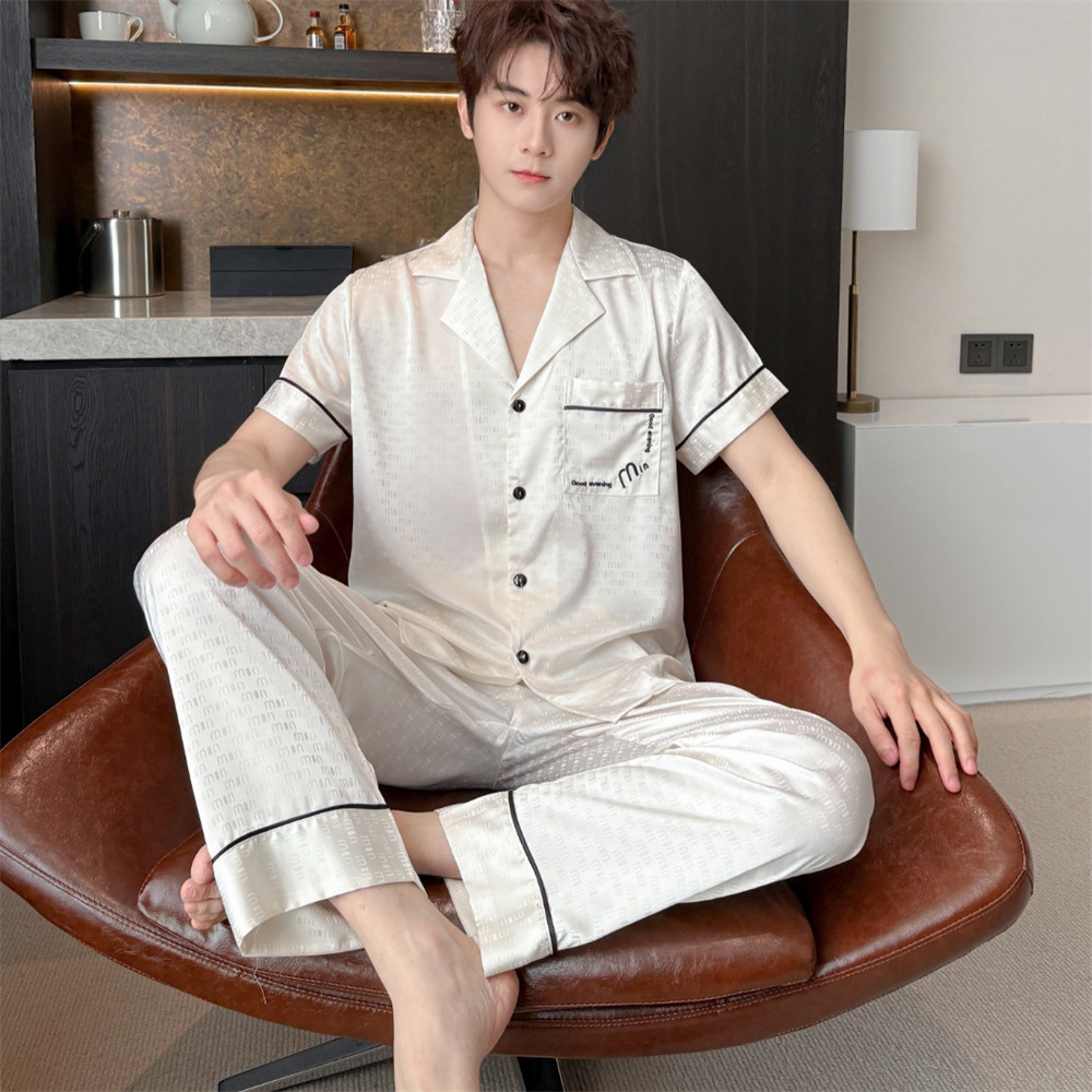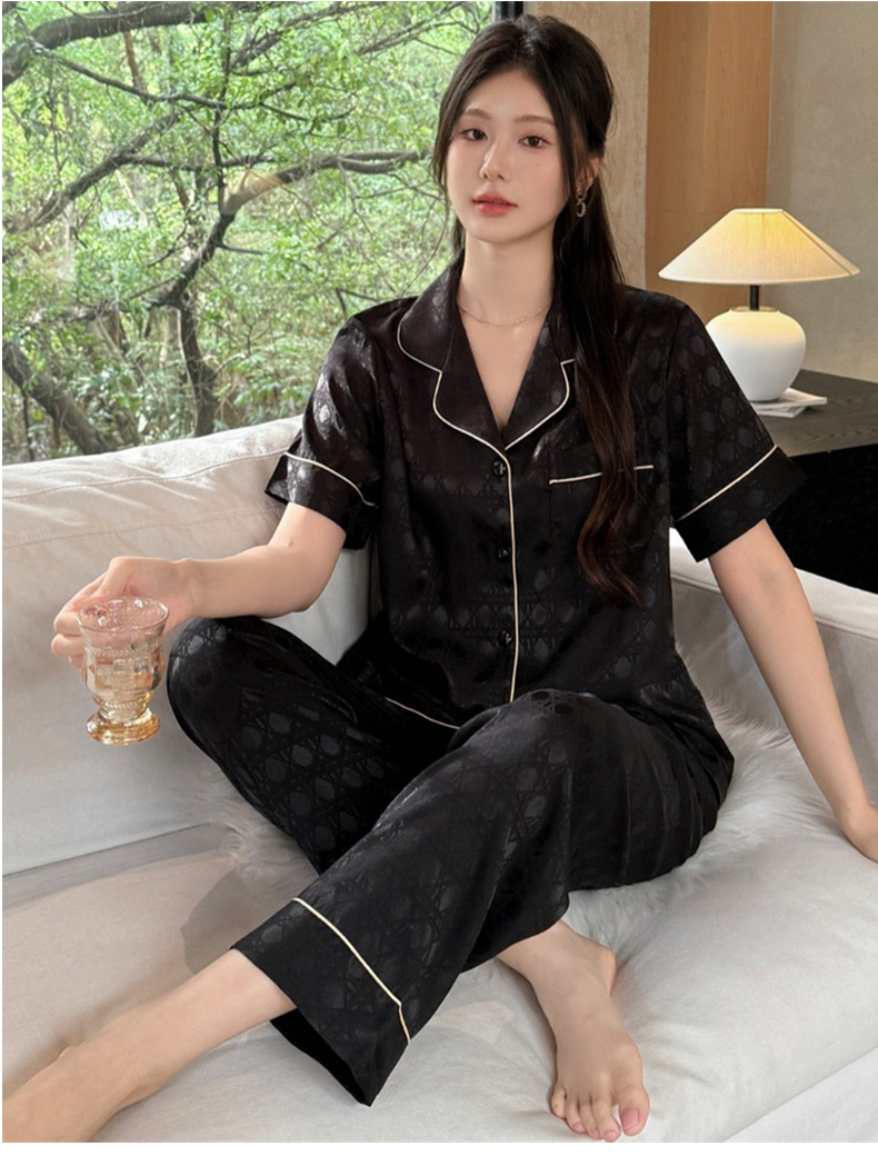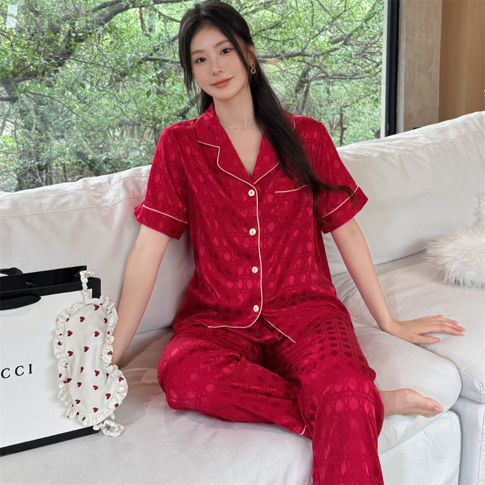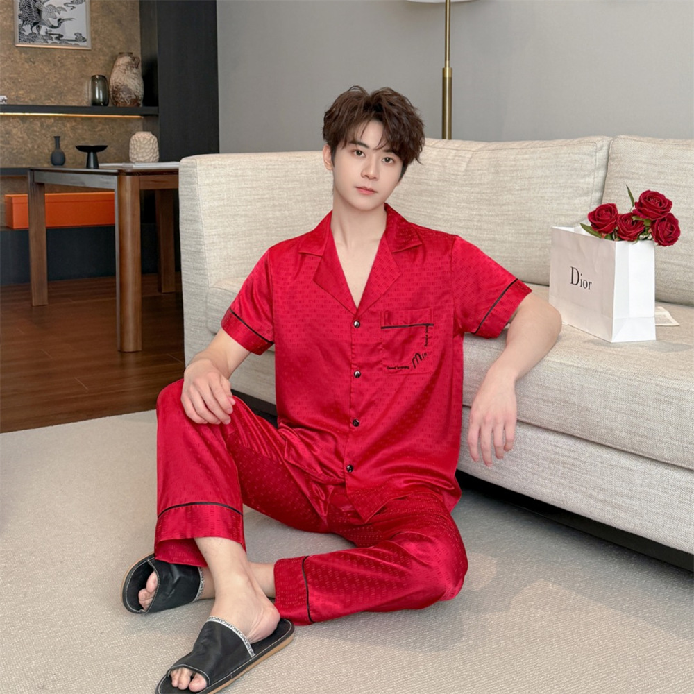 커플 잠옷 2025 봄과 여름 남자의 새로운 아이스 실크 짧은 소매 바지 세트 얇은 여성 홈 웨어 도매