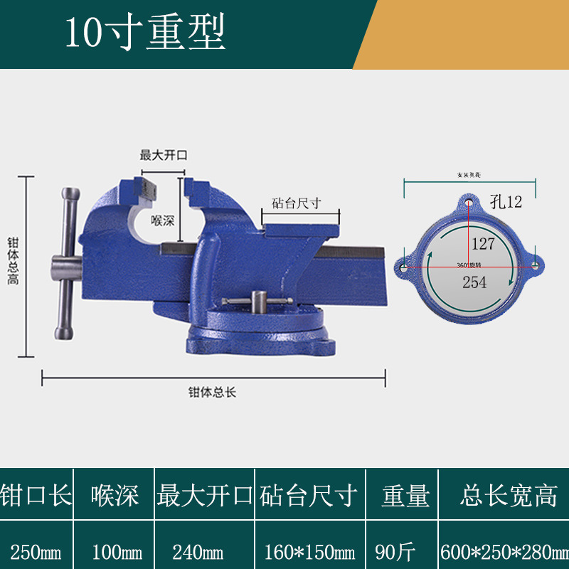 • 골드 카키 5inch 스퀘어 스틸 벤치 바이스
