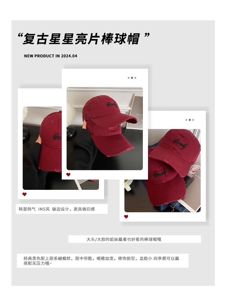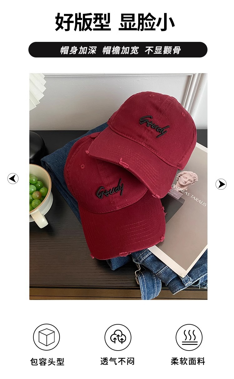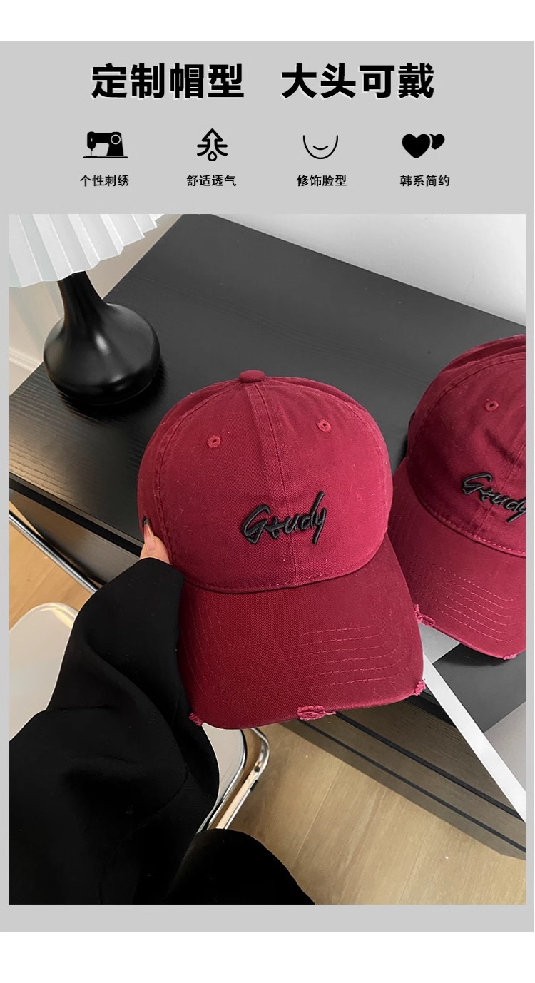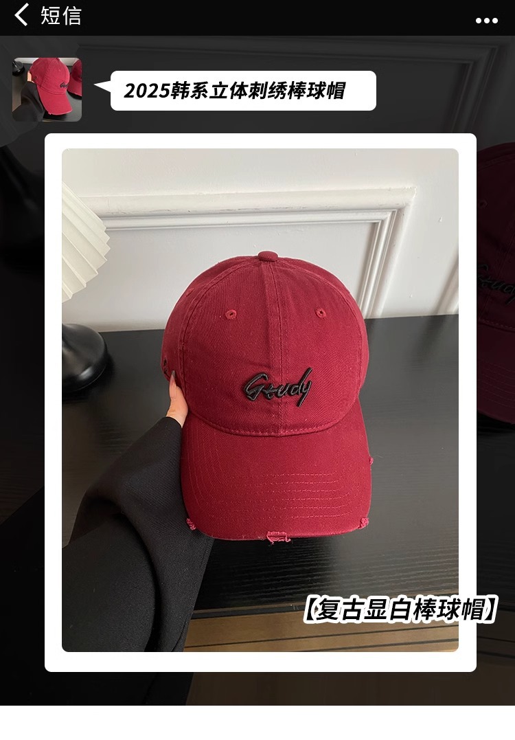 미국 복고풍 빨간 야구 모자 여자 2025 년 봄 새로운 큰 머리 둘레 확대 및 심화 큰 테두리 오리 혀 모자스토어 가기