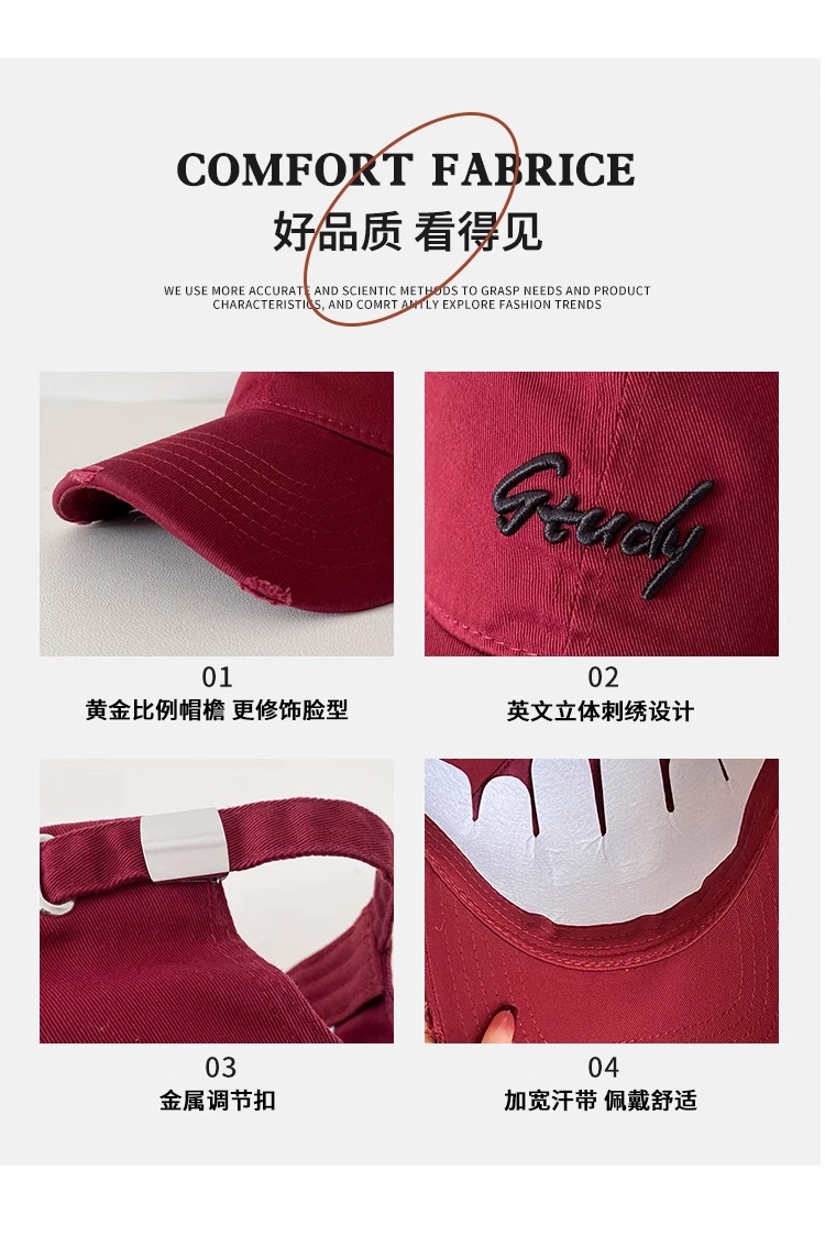 미국 복고풍 빨간 야구 모자 여자 2025 년 봄 새로운 큰 머리 둘레 확대 및 심화 큰 테두리 오리 혀 모자