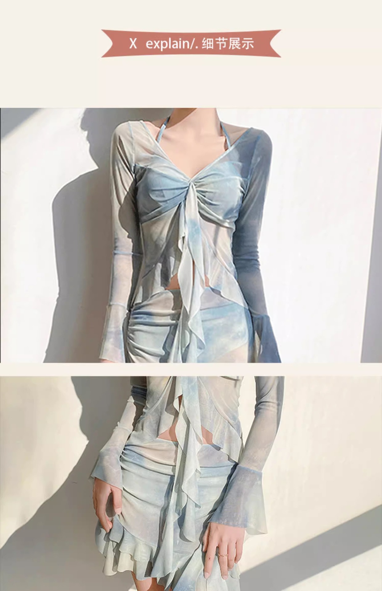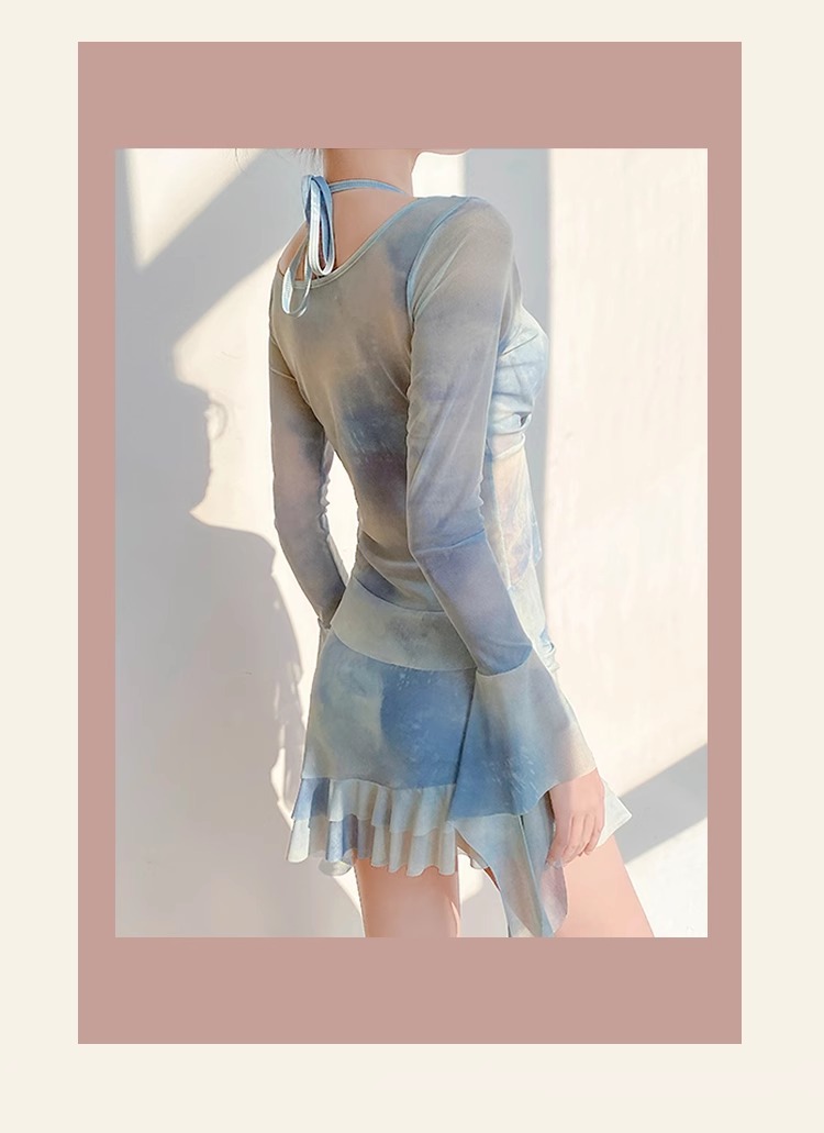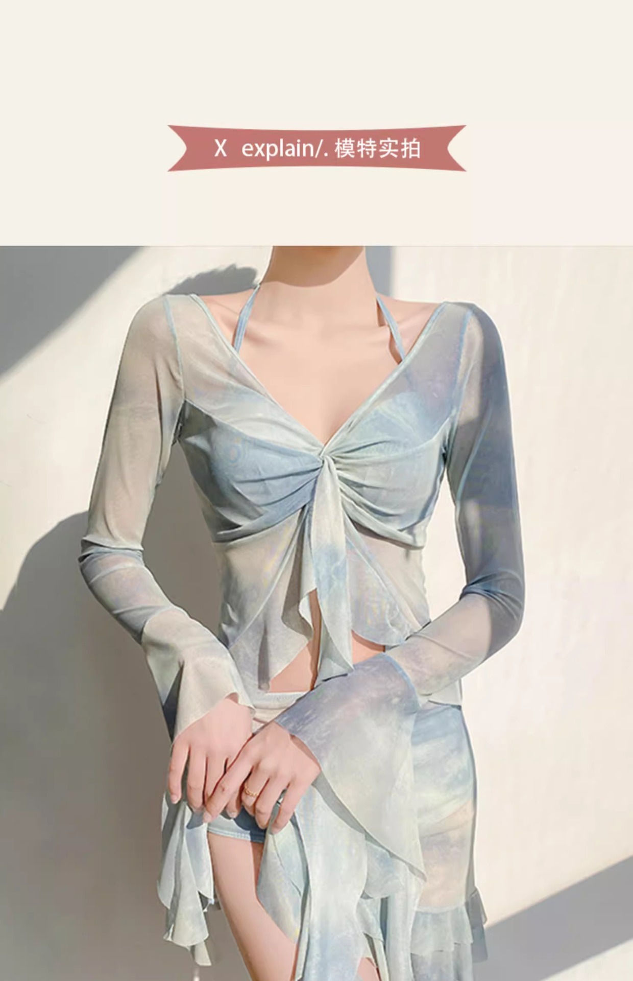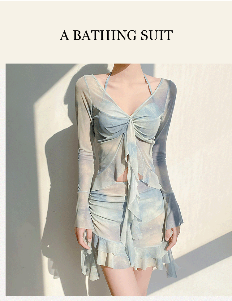 스플릿 수영복 여성용 2025 년 새 폭발 온천 4 피스 긴 소매 블라우스 선 스크린 비치 비키니