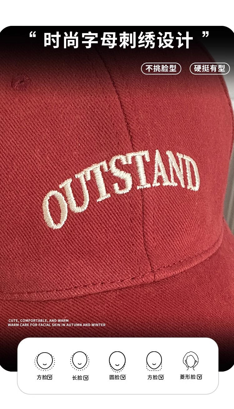 빨간 편지 야구 모자 여자 2025 봄 새로운 스타일 증가 및 심화 큰 브림 모자 얼굴 쇼 작은 모자 조수스토어 가기