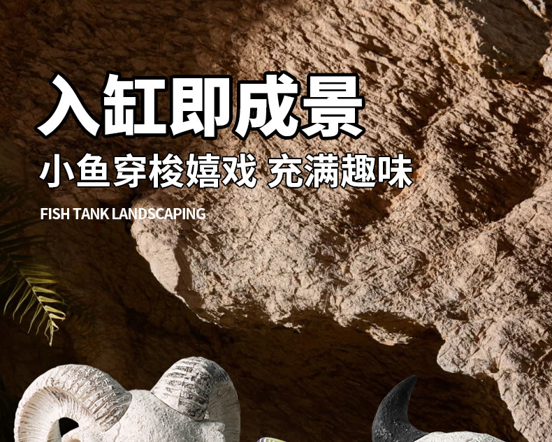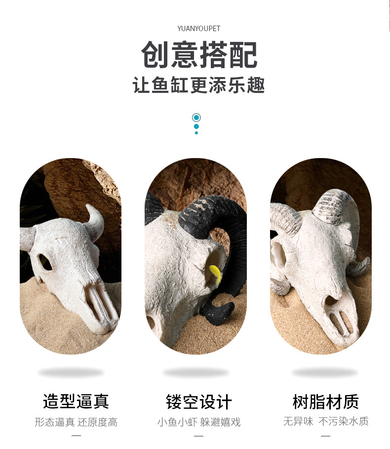 국경 간 수조 시뮬레이션 공룡 뼈 두개골 물고기 해골 양 머리 피난 구멍 소 머리 수생 식물 조경 장식스토어 가기