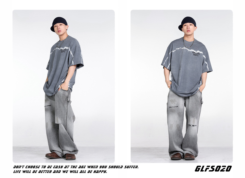GLFS-25 여름 하이 퀄리티 스프레이 말리우 쇼트 와이드 티셔츠 올 매치 쇼트 BF 스타일 하이 스트리트 남성용 티셔츠스토어 가기