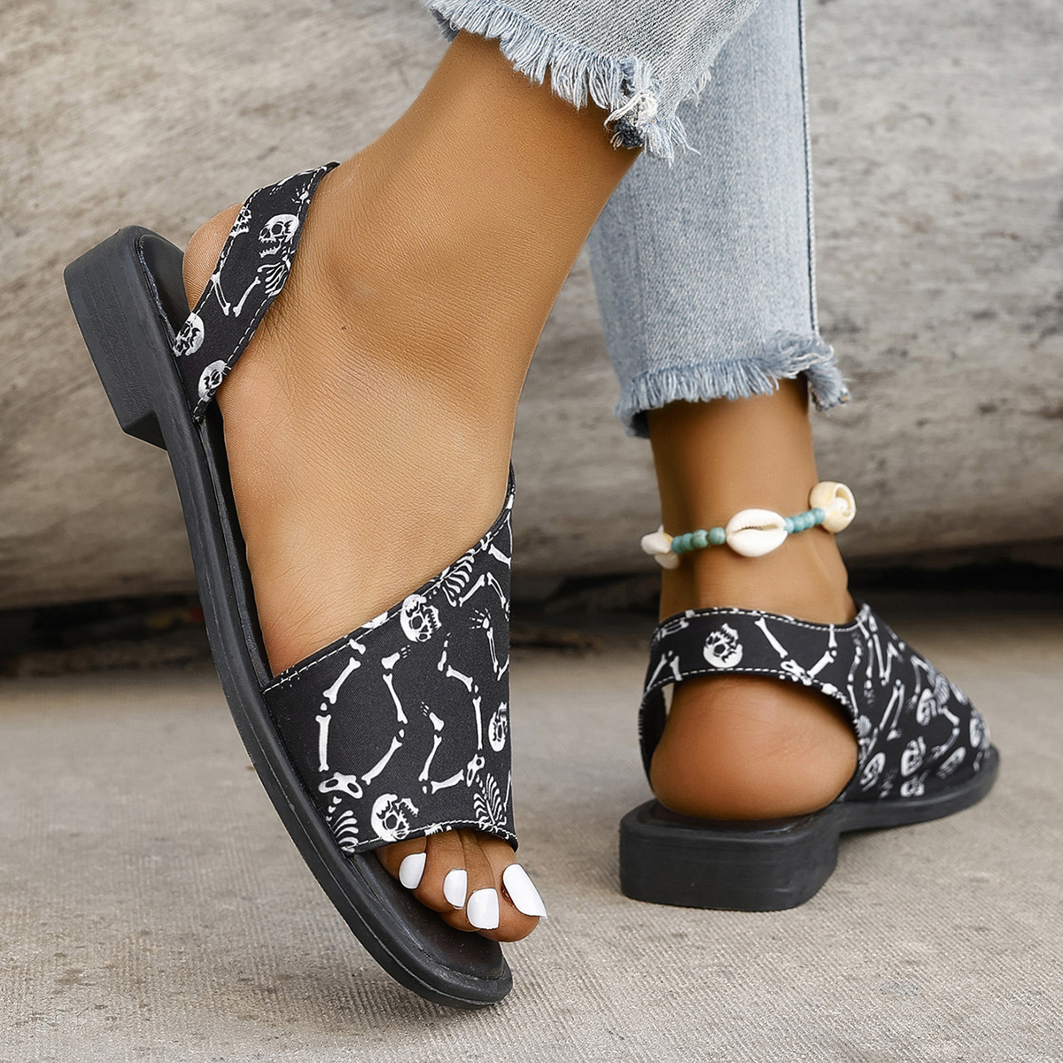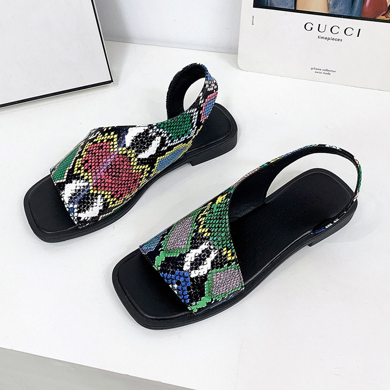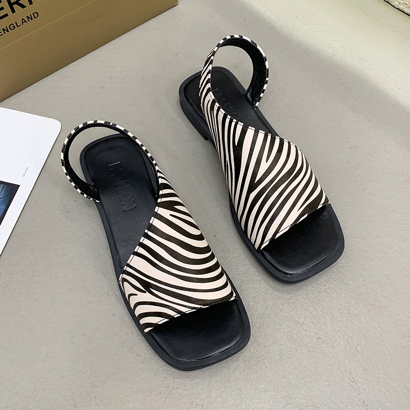 레오파드 무늬 샌들 여성의 2025 년 여름 새로운 플러스 사이즈 물고기 입 스퀘어 헤드 다시 빈 유럽과 미국 패션 두꺼운 발 뒤꿈치 샌들 조수