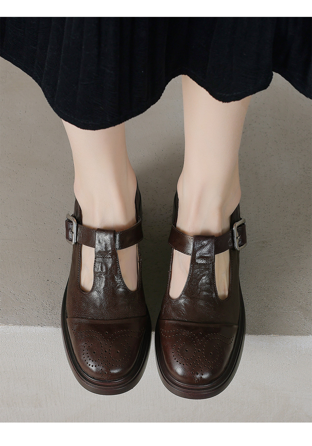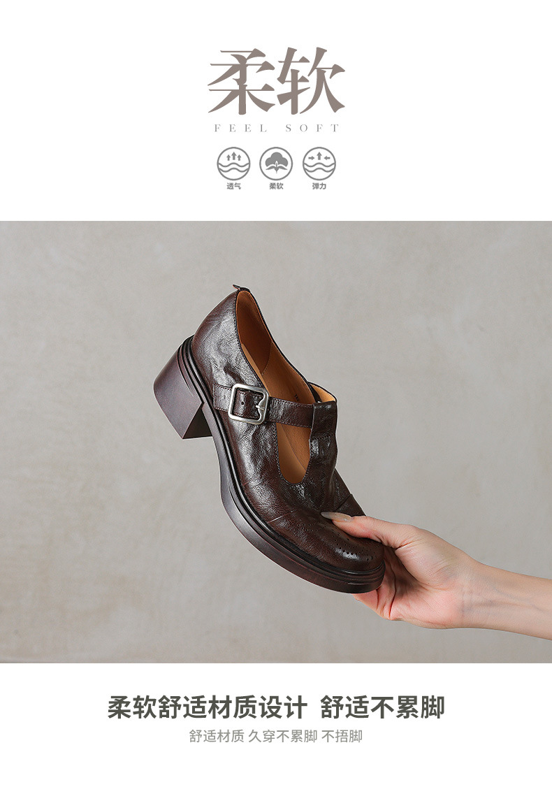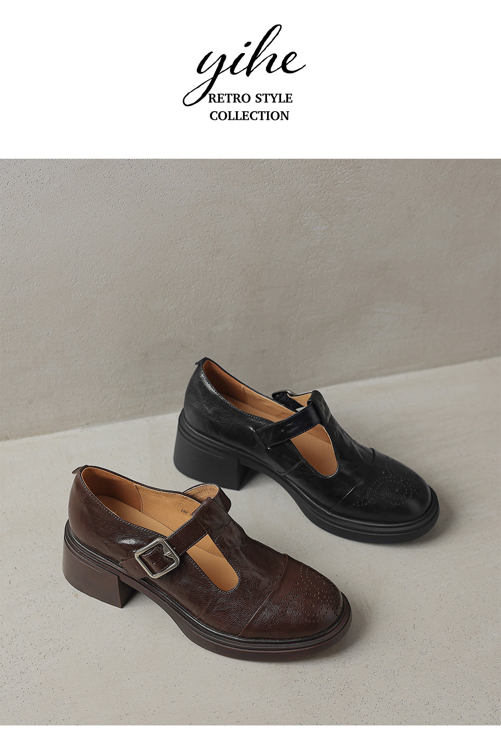 최고 양가죽 5cm 두꺼운 밑창 로퍼 2025 봄 여름 가을 정품 가죽 학생 T-스트랩 싱글 레이어 신발 미드 힐 풀 가죽 여성스토어 가기