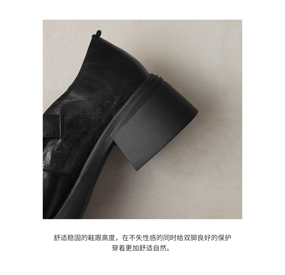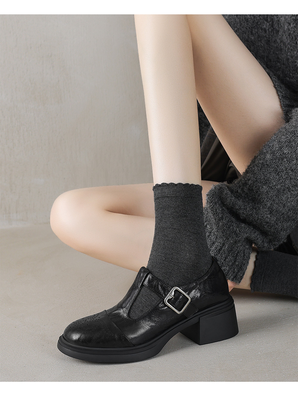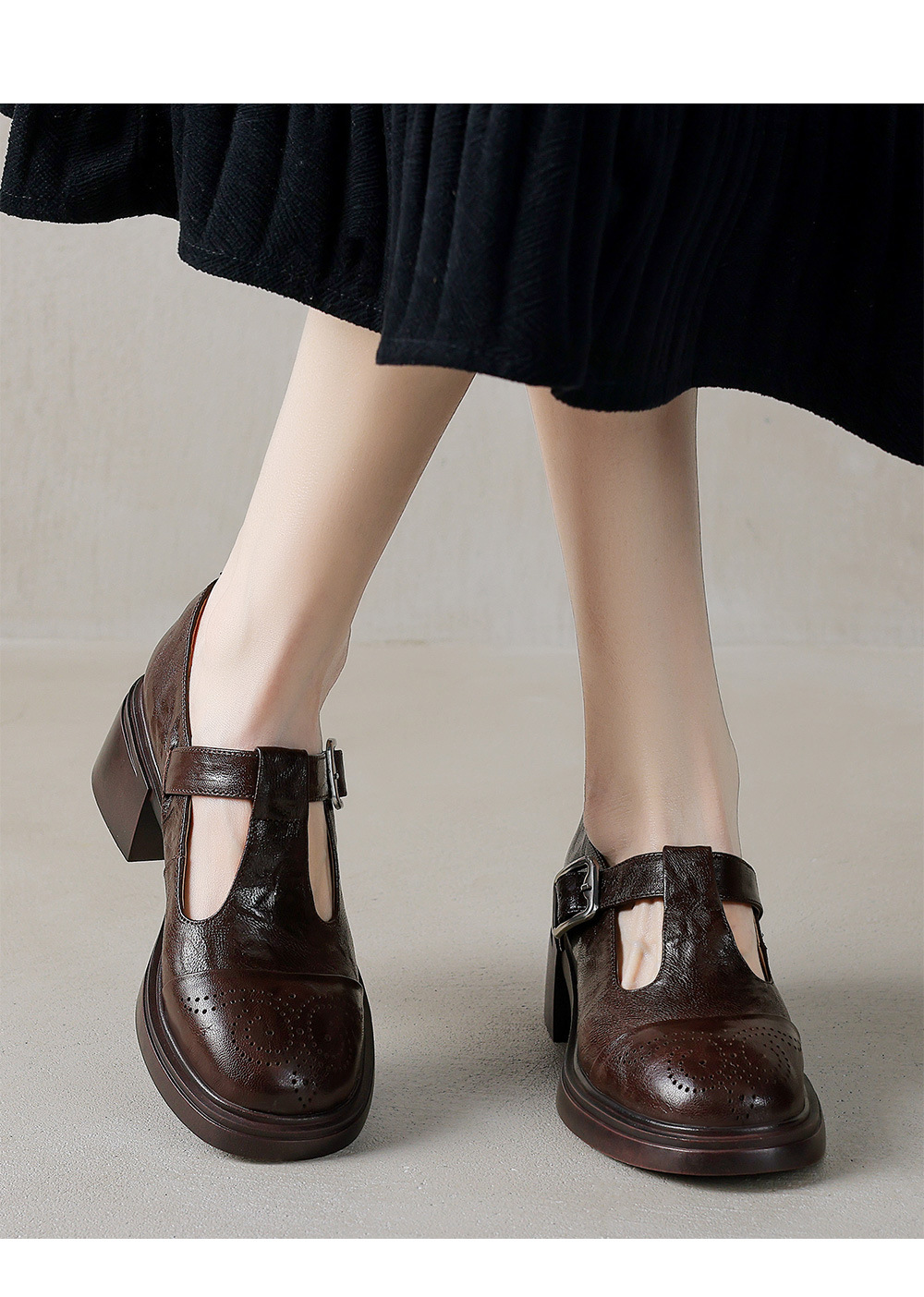 최고 양가죽 5cm 두꺼운 밑창 로퍼 2025 봄 여름 가을 정품 가죽 학생 T-스트랩 싱글 레이어 신발 미드 힐 풀 가죽 여성스토어 가기