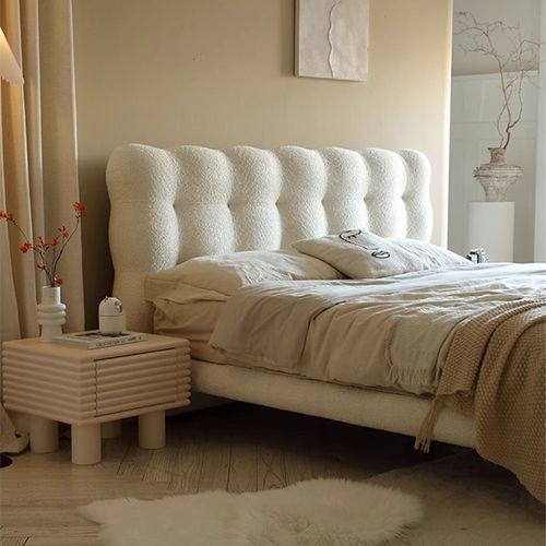 버블 침대 테디 벨벳 프랑스 크림 스타일 소녀의 침실 퍼프 현대 간단한 더블 퀸 침대 마스터 침실 마시멜로스토어 가기
