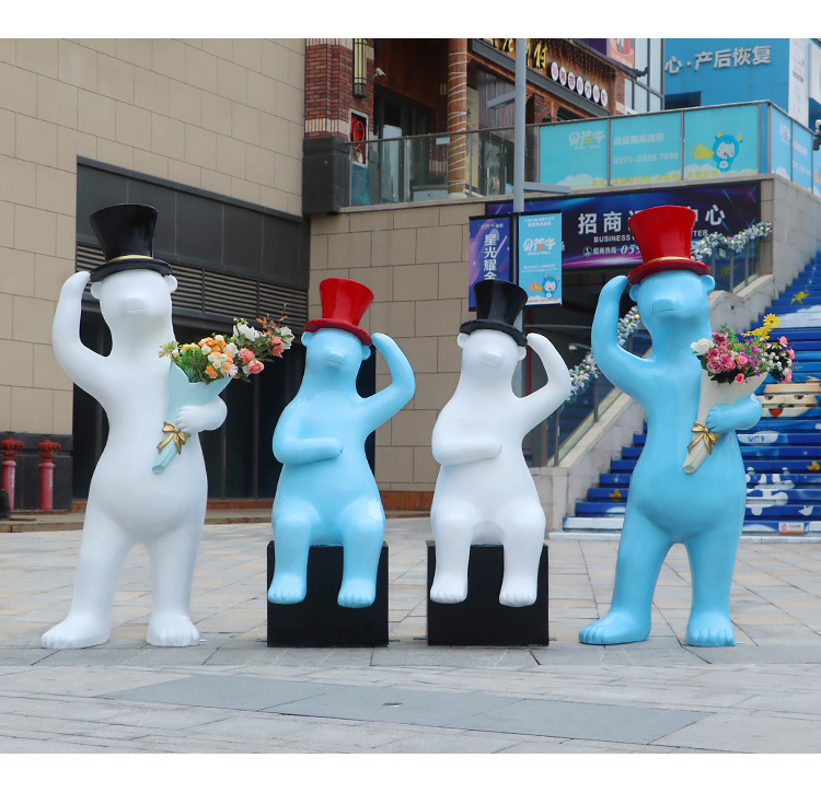 야외 만화 의례 곰 조각 커뮤니티 판매 사무실 호텔 환영 장식 유리 섬유 강화 플라스틱 쇼핑몰 장식스토어 가기