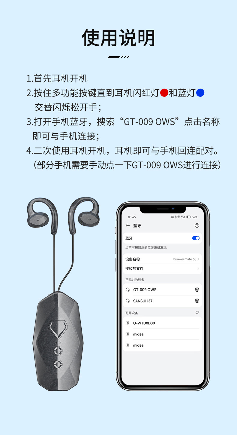2025 칼라 클립 무선 블루투스 헤드셋은 귀에 닿지 않으며, 긴 지구력, 소음 감소, 노래 듣기, 비즈니스 테이크 아웃 라이더, 유니버설