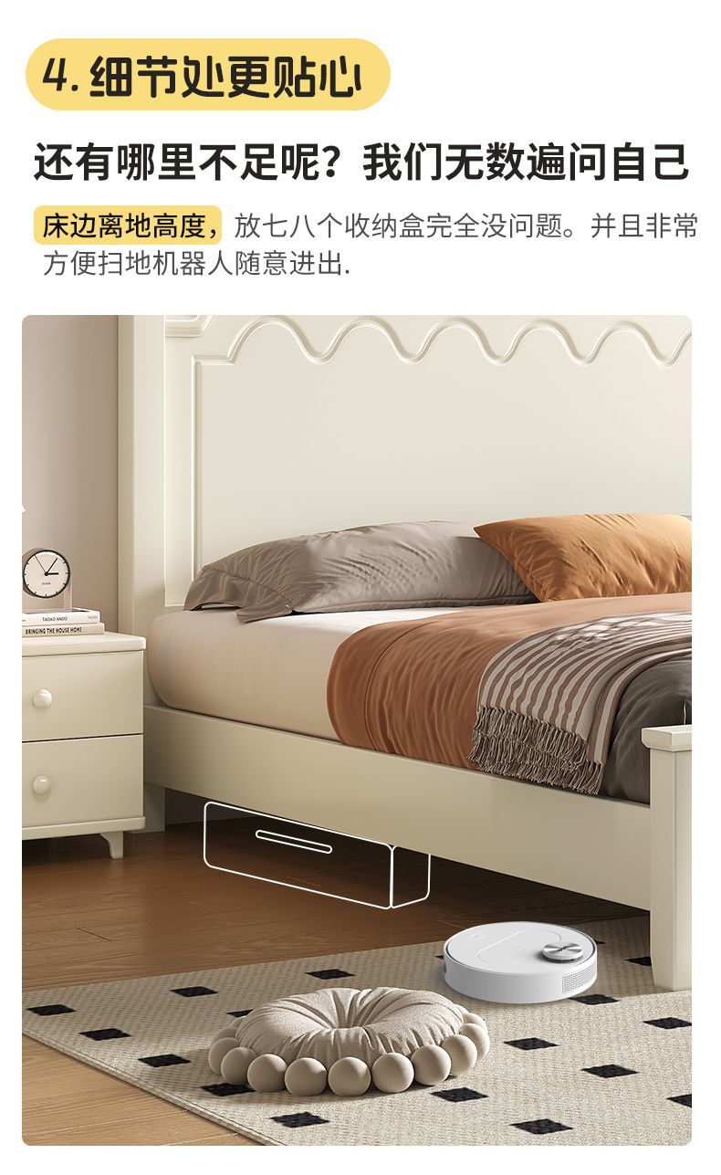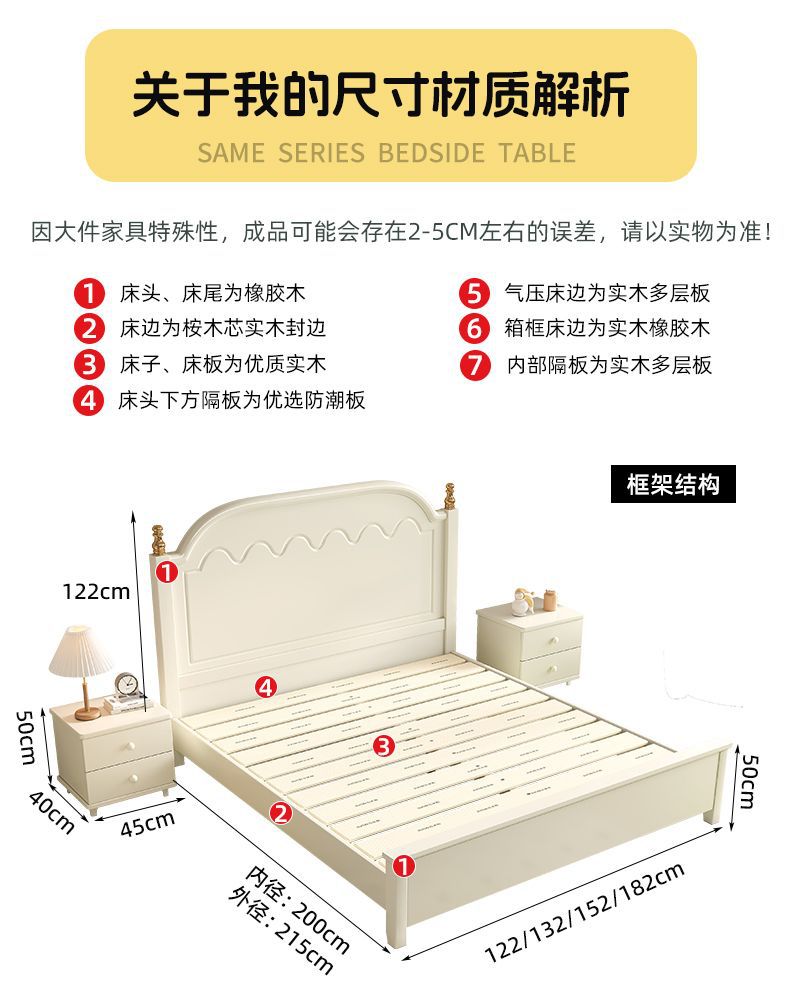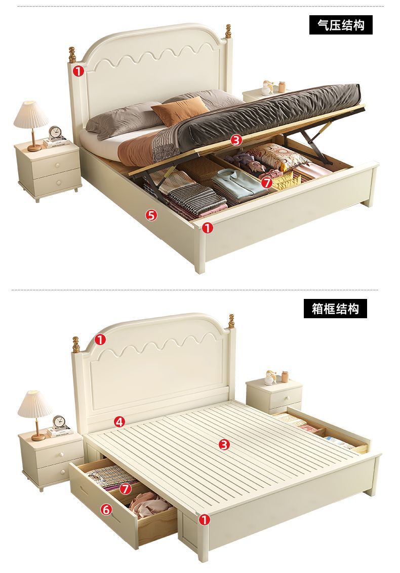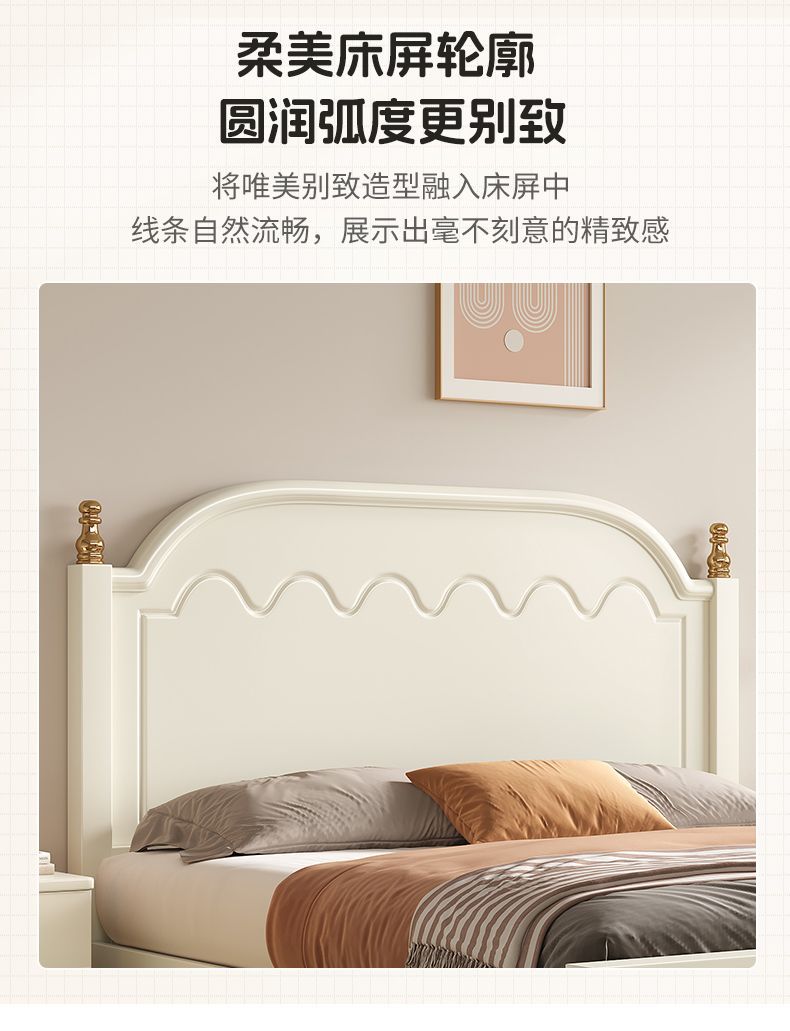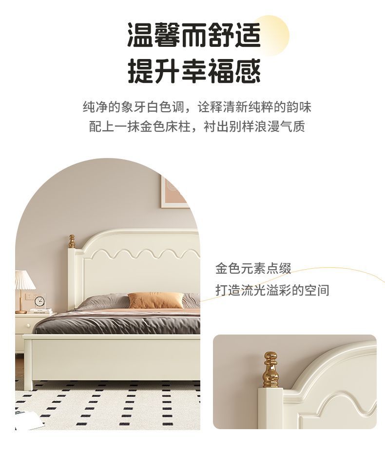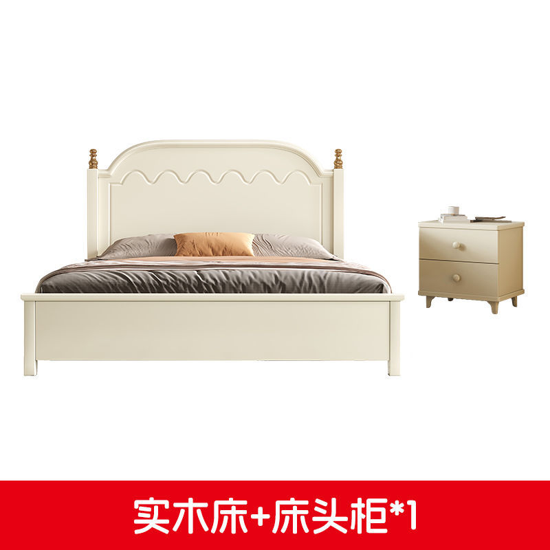 현대 간단한 흰색 단단한 나무 침대 미국 스타일 1.8 m 한국 스타일 더블 마스터 침실 1.2 m 크림 스타일 공주 소녀 침대
