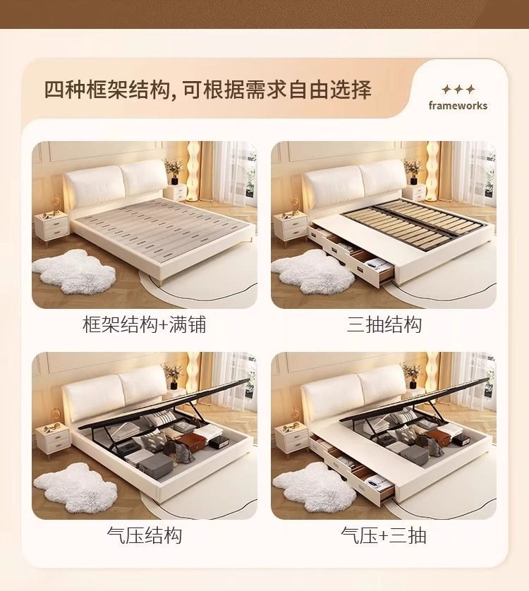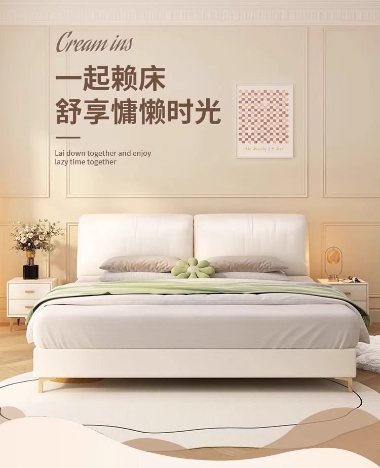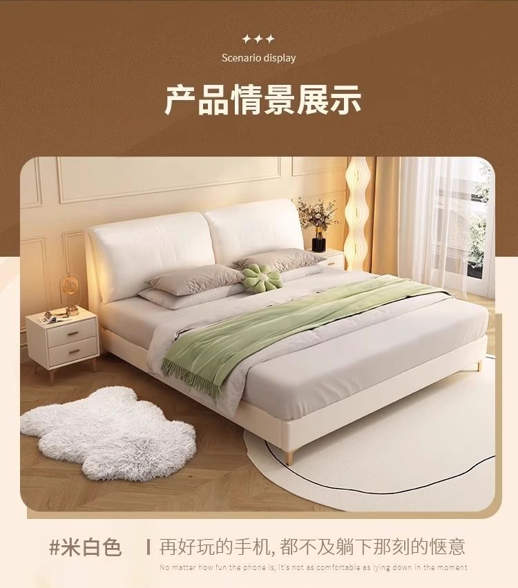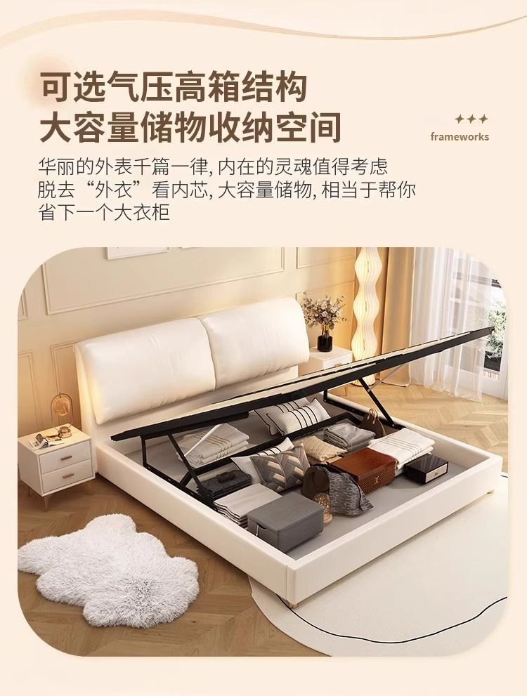 크림 스타일 엔트리 럭셔리 가죽 침대 코끼리 귀 침대 더블 침대 현대 간단한 마스터 침실 1.5 m 웨딩 침대 보관 침대스토어 가기