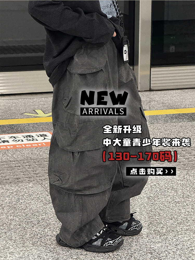 바오두 아동복 남아 바지 봄 가을 2025 신상 봄옷 트렌디 캐주얼 스트레이트 카고 팬츠 100-170스토어 가기