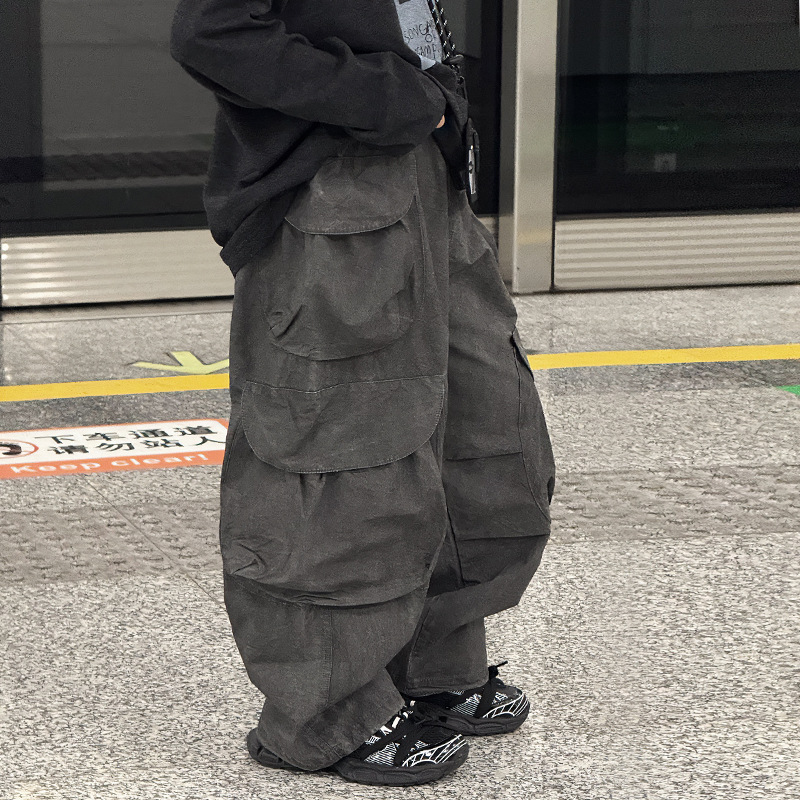 바오두 아동복 남아 바지 봄 가을 2025 신상 봄옷 트렌디 캐주얼 스트레이트 카고 팬츠 100-170