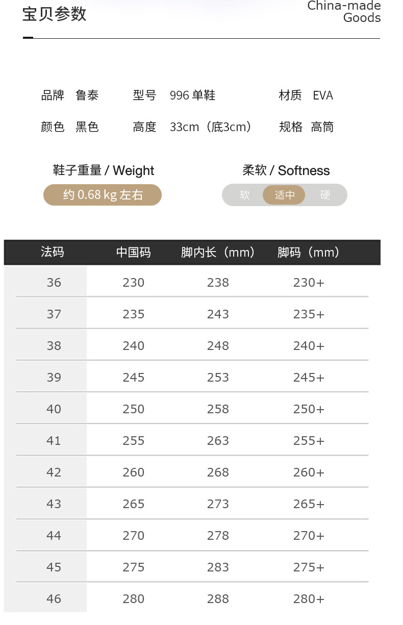 루타이 레인부츠 EVA 주방용 방수 폼 미끄럼 방지 레인부츠 996 하이탑 내마모성 내산성 방수 신발 워터부츠
