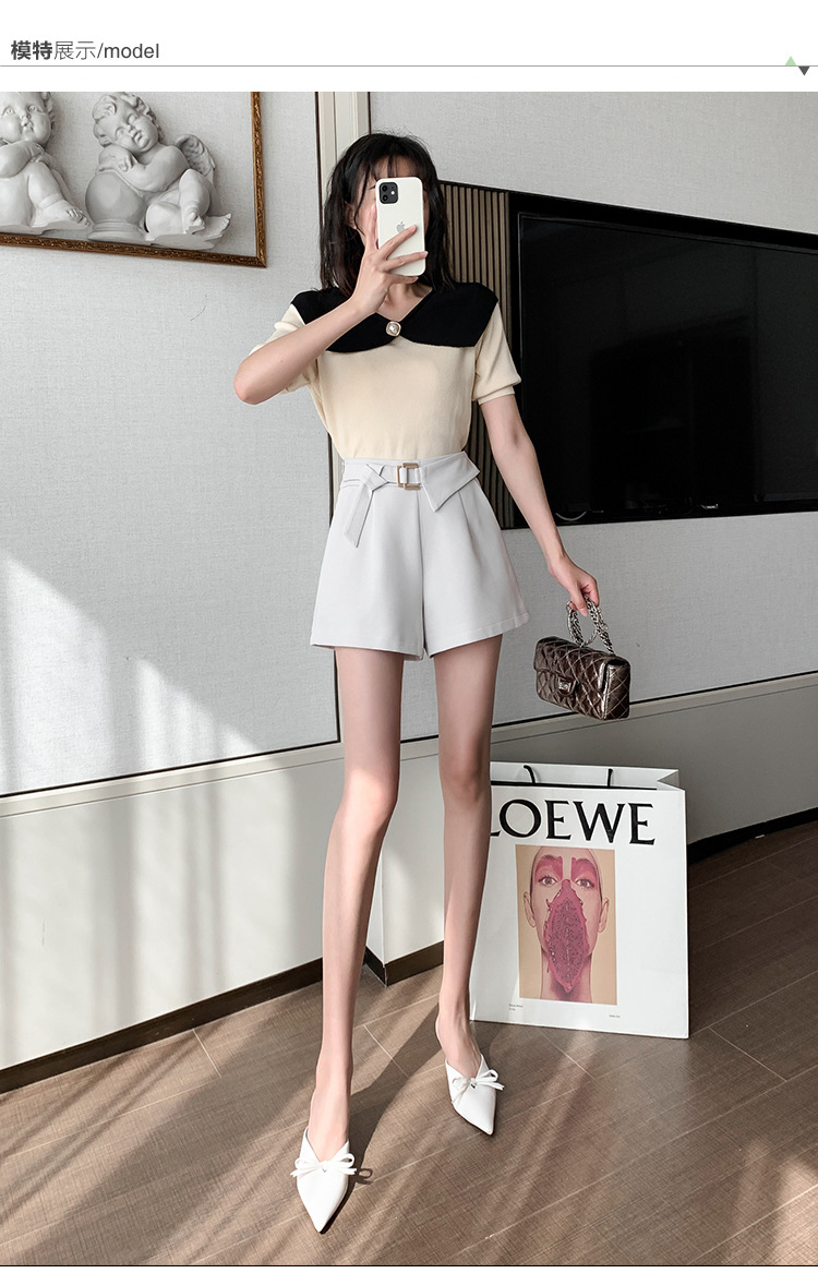 재고 반바지 여자 봄과 여름 2025 비대칭 금속 버튼 반바지 높은 허리 넓은 다리 바지 모든 경기 캐주얼 짧은 바지스토어 가기