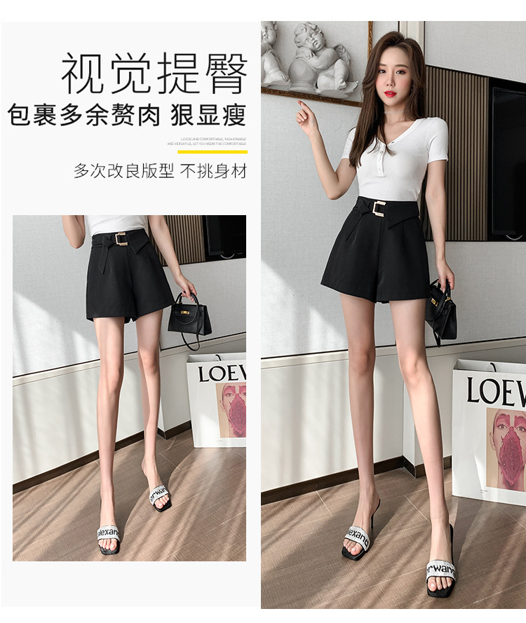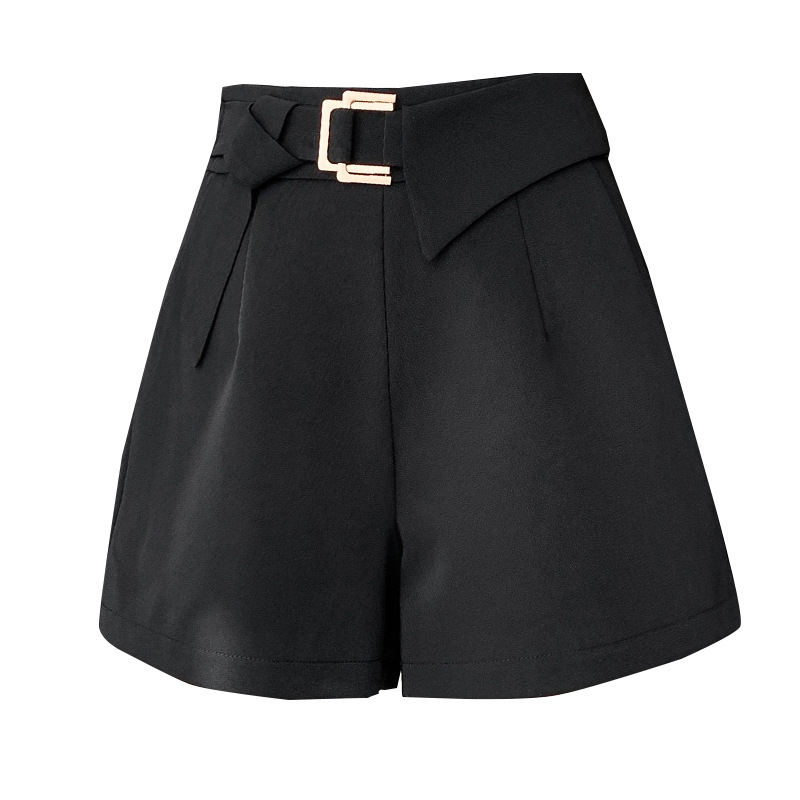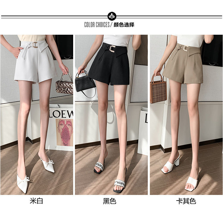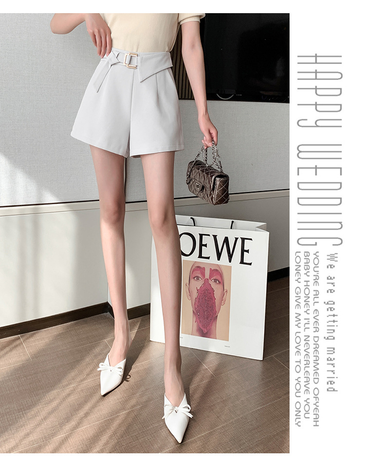 재고 반바지 여자 봄과 여름 2025 비대칭 금속 버튼 반바지 높은 허리 넓은 다리 바지 모든 경기 캐주얼 짧은 바지