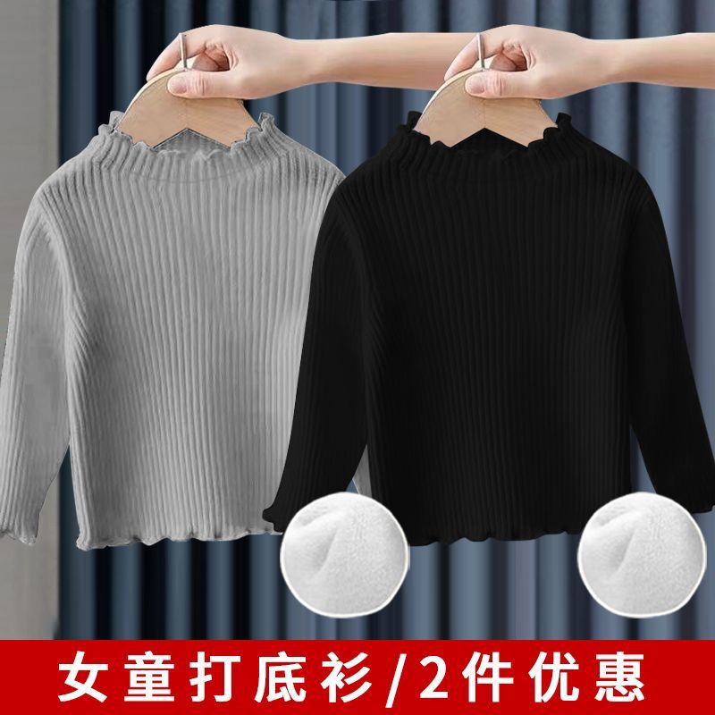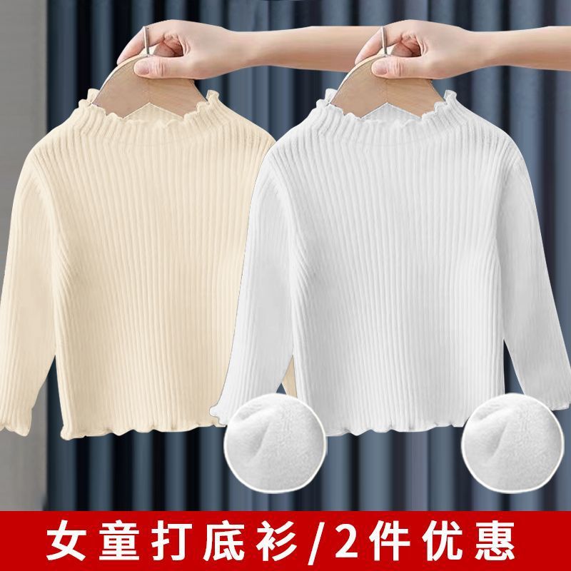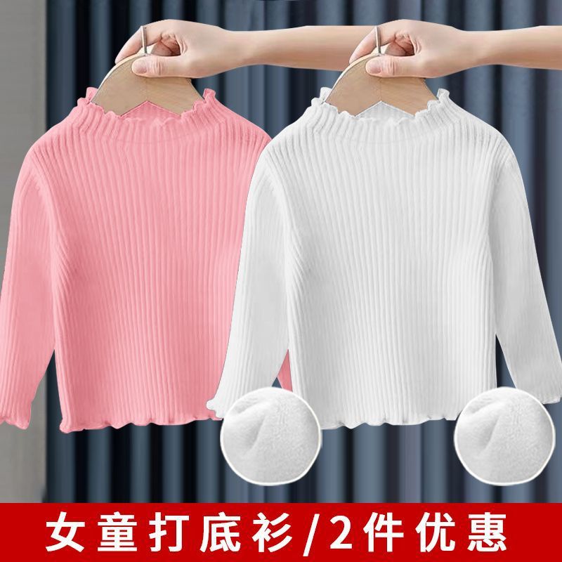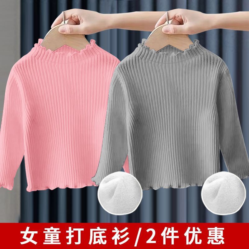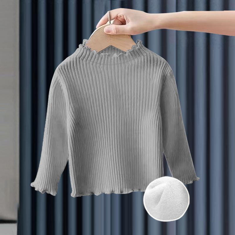 소녀베이스 셔츠 탑 공주 스타일 아기 가을과 겨울 줄무늬 간단한 어린이 긴팔 티셔츠 기모 두껍게