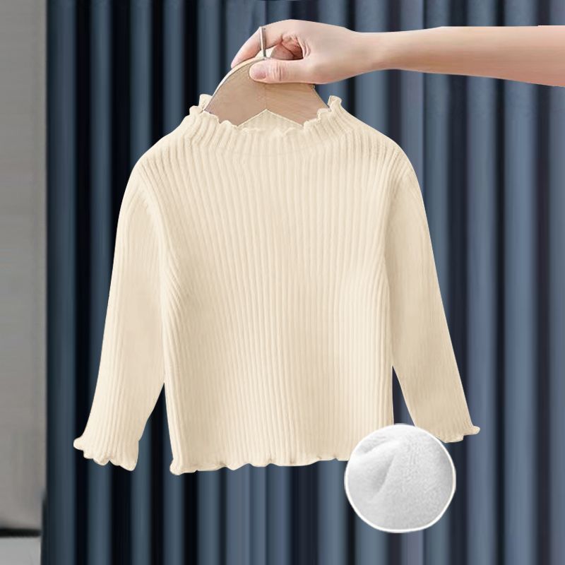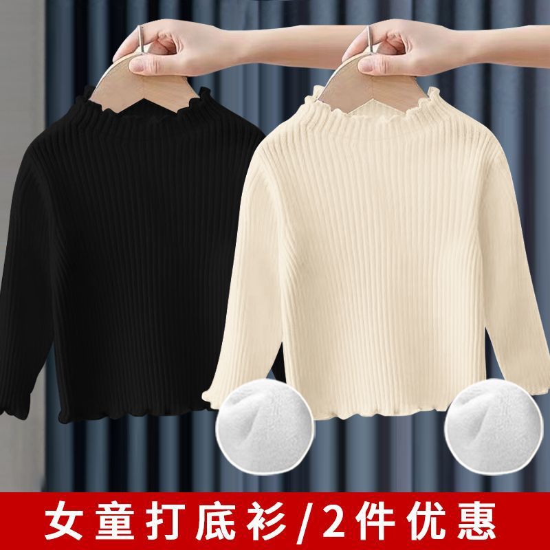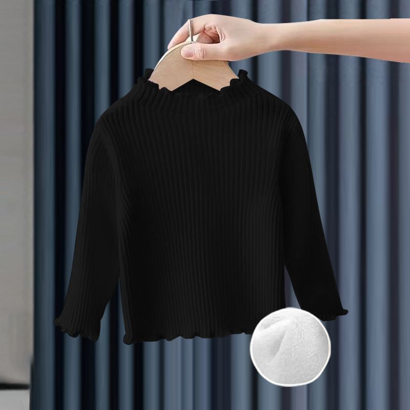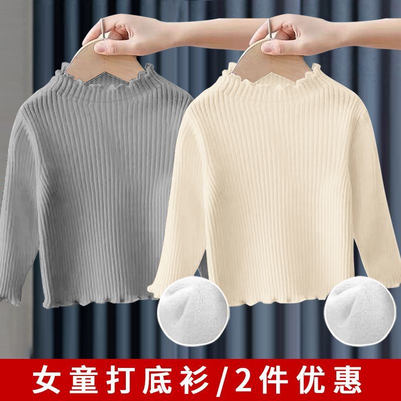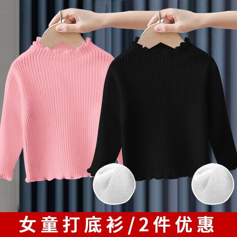 소녀베이스 셔츠 탑 공주 스타일 아기 가을과 겨울 줄무늬 간단한 어린이 긴팔 티셔츠 기모 두껍게