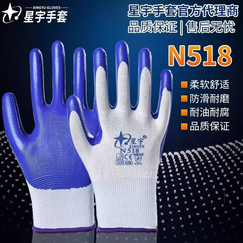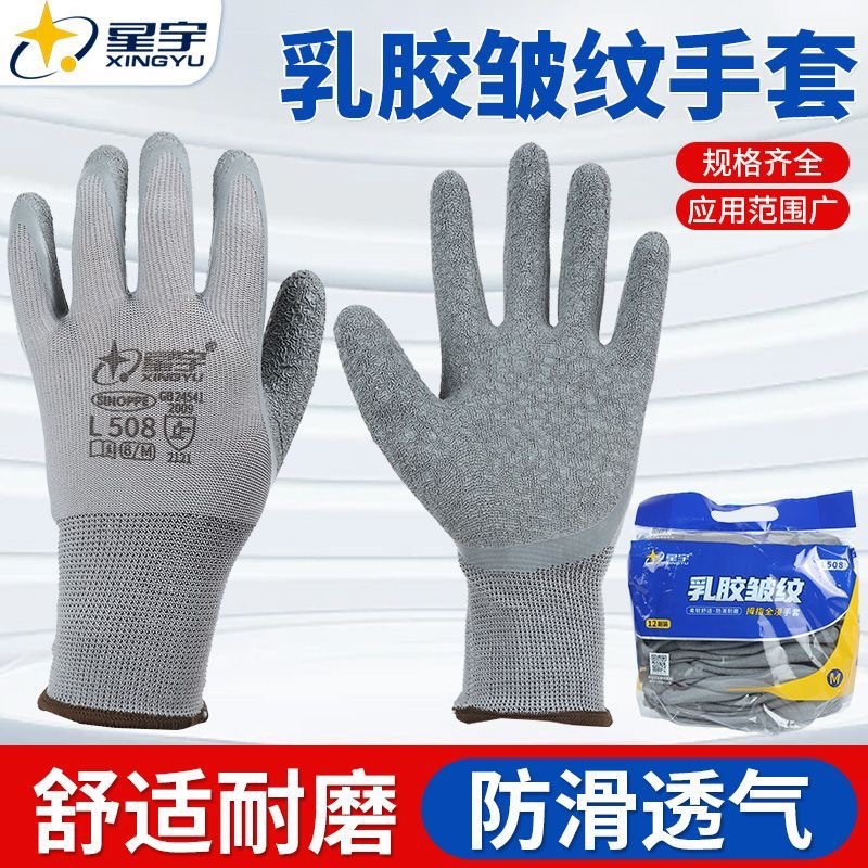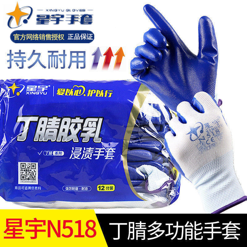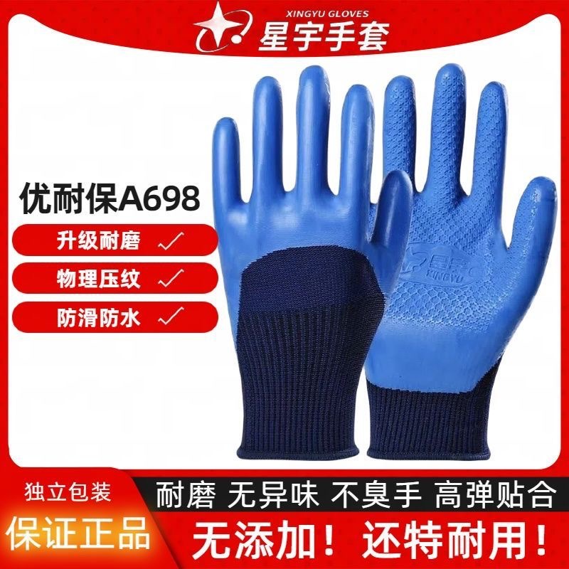 도매 Xingyu 장갑 주름 니트릴 디핑 반 침지 내마모성 비 슬립 사이트 내유성 산 및 알칼리성 다기능 장갑스토어 가기