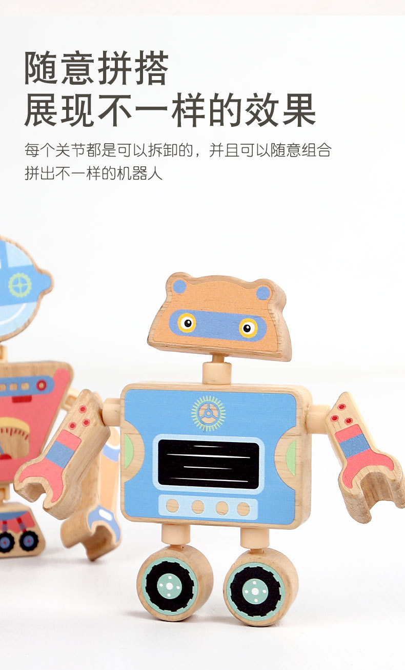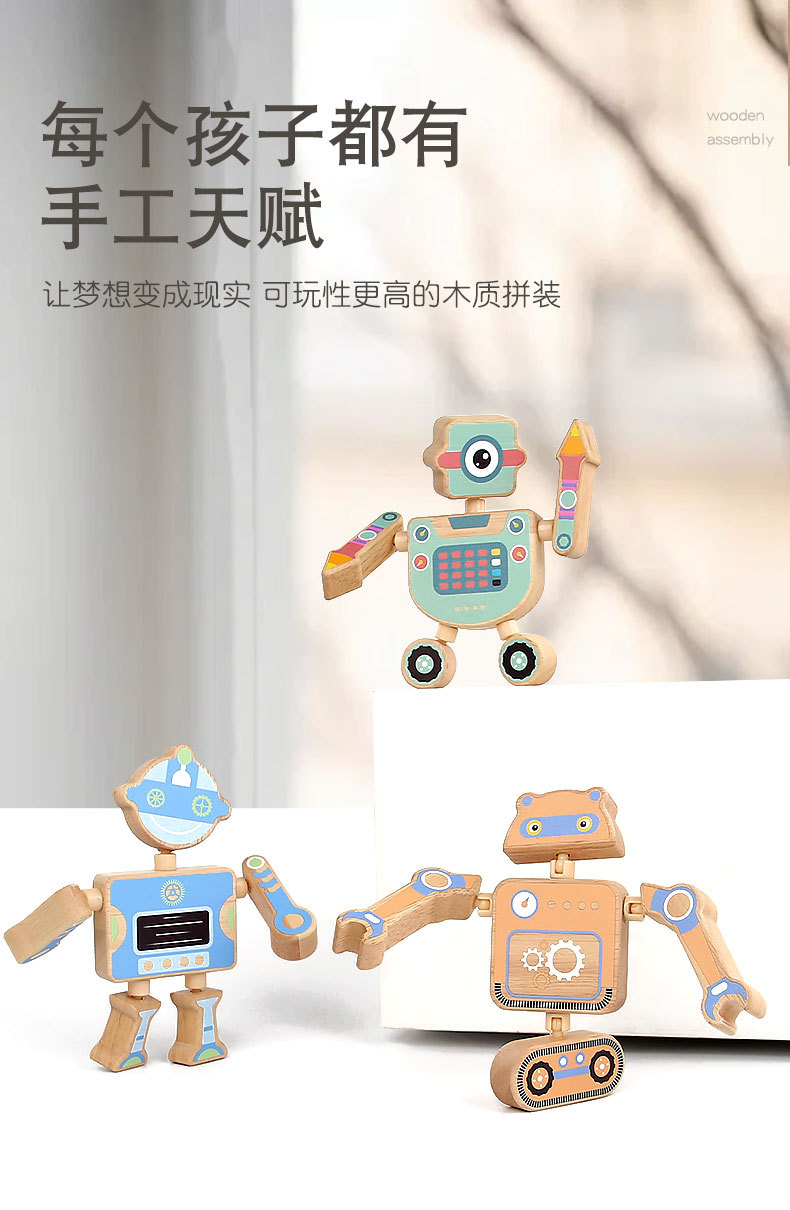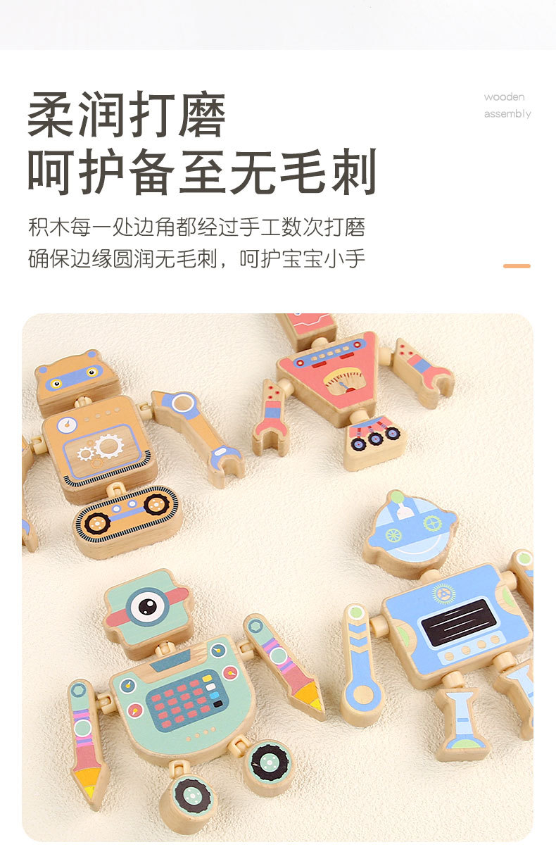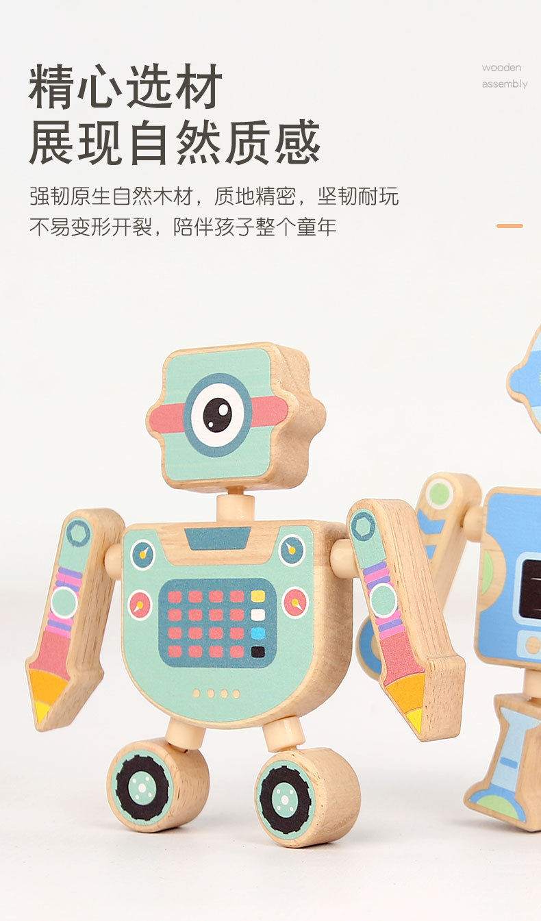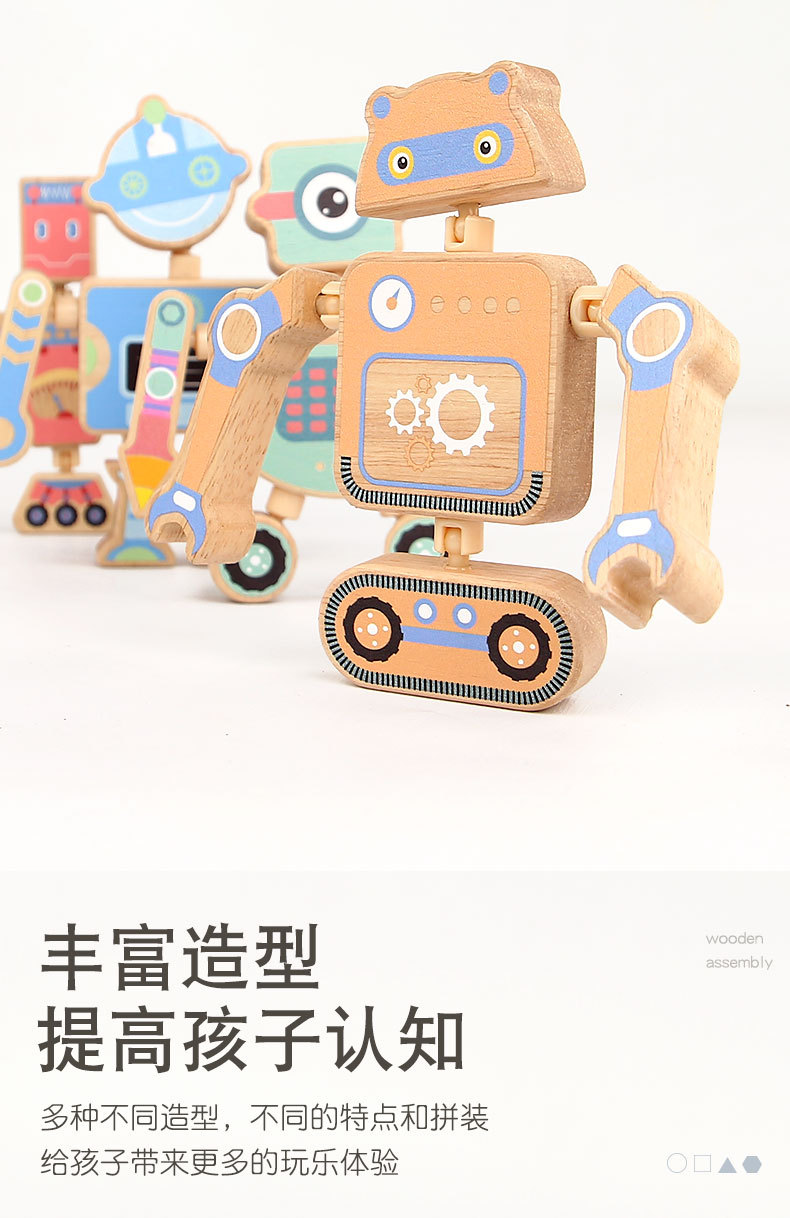 로봇 세트 초등학생 데스크탑 장난감 어린이 분해 및 조립 건물 블록 나무 장난감 보조 단단한 나무