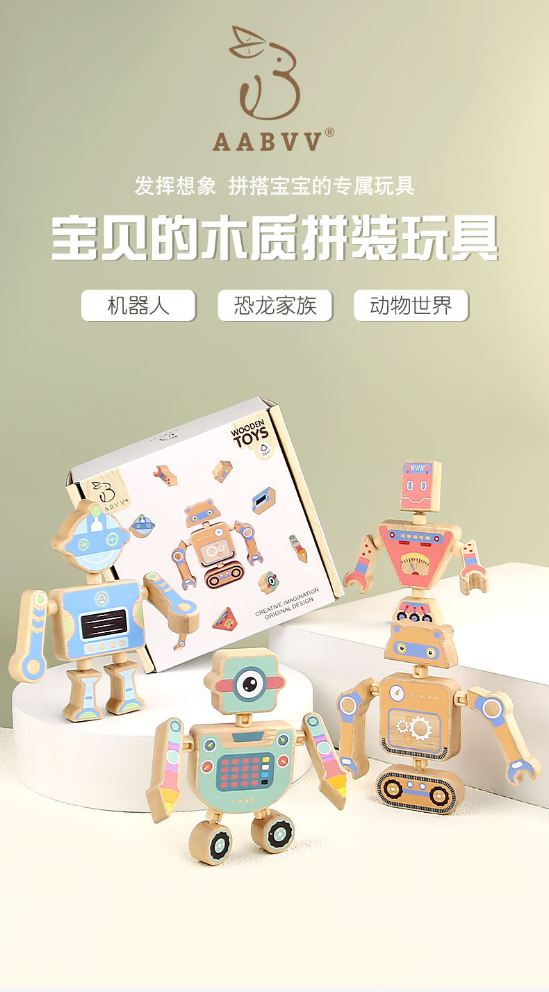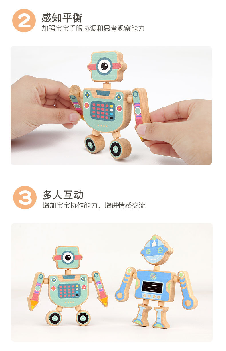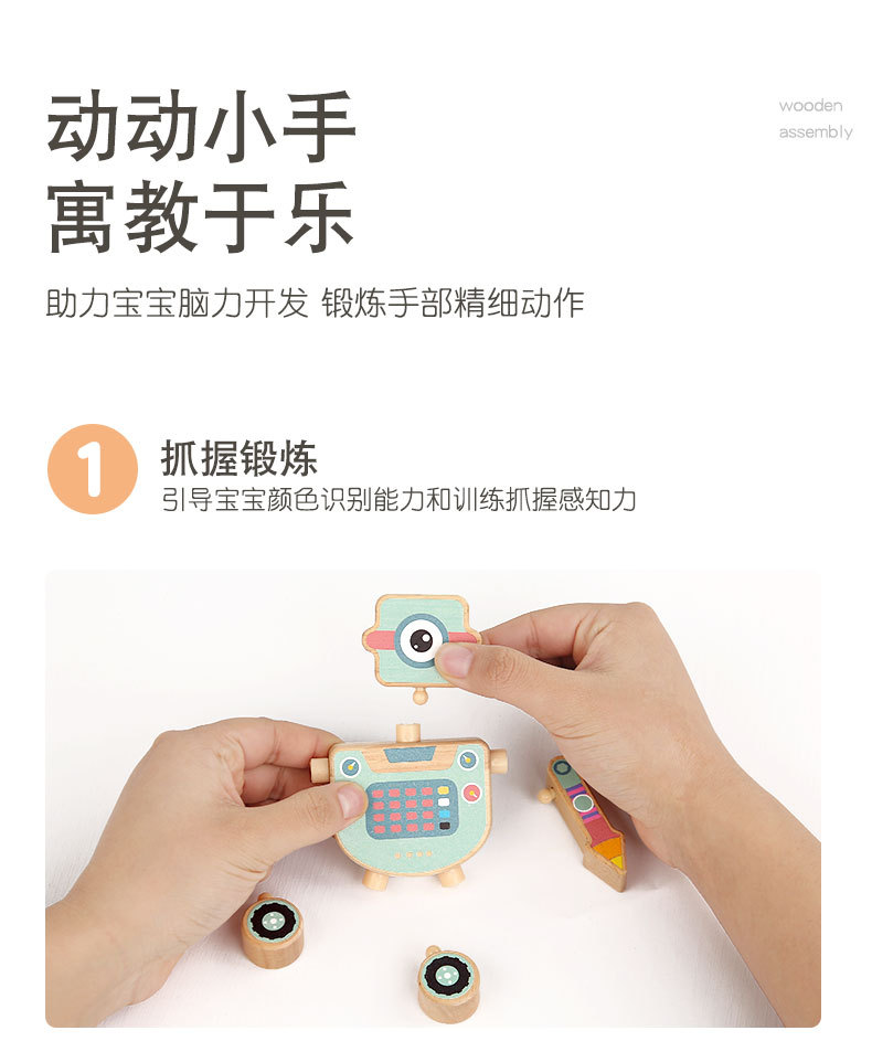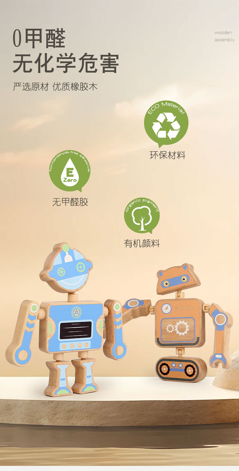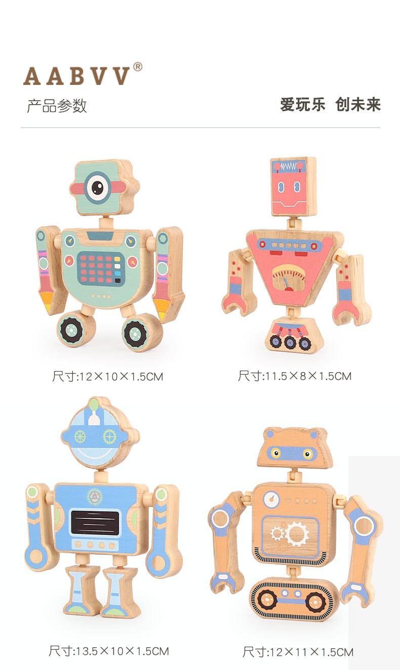 로봇 세트 초등학생 데스크탑 장난감 어린이 분해 및 조립 건물 블록 나무 장난감 보조 단단한 나무